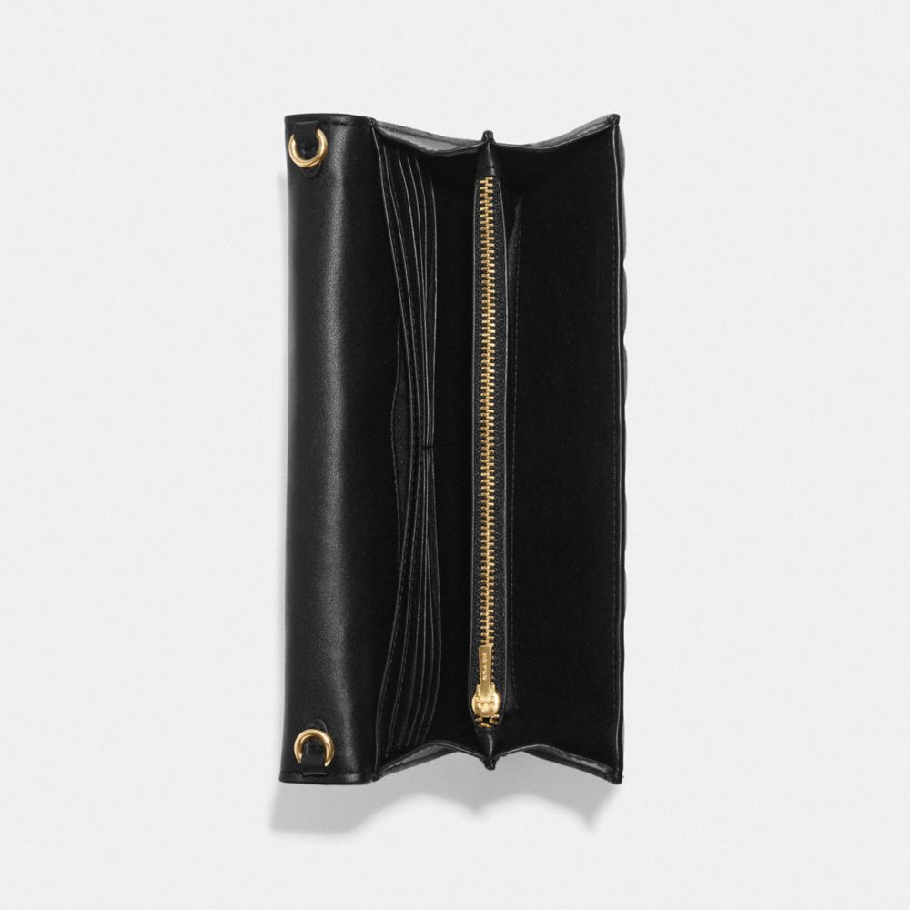 Nappa leather and smooth leather| Eight credit card slots| Full-length bill compartment| Inside zip and open pockets| Snap closure| Outside slip pocket| Detachable chain strap with 23" drop for shoulder or crossbody wear| 8 1/4" (L) x 5 1/4" (H) x 1 1/4" (W)Style No. C6887