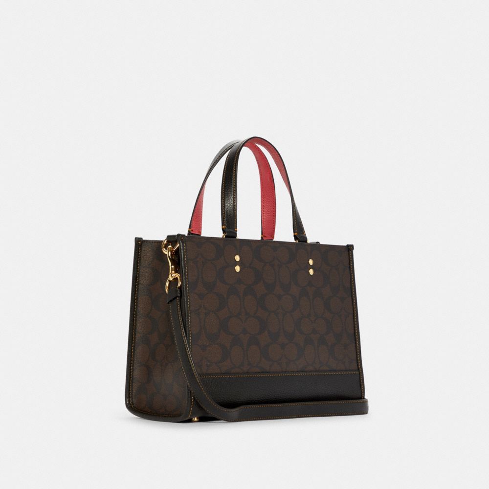 Signature coated canvas, refined pebble leather and smooth leather| Inside zip, cell phone and multifunction pockets| Snap closure, fabric lining| Handles with 5 1/4" drop| Detachable strap with 20" drop for shoulder or crossbody wear| 11 1/2" (L) x 8 3/4" (H) x 5" (W)Style No. C6921