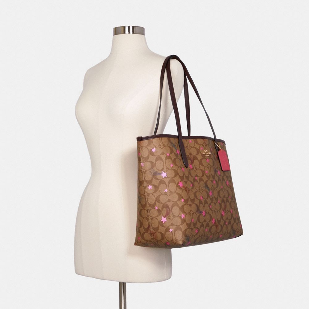 Signature coated canvas and smooth leather| Inside zip pocket| Snap closure| Handles with 10" drop| 13" (L) x 11 1/2" (H) x 6 1/4" (W)Style No. C7243