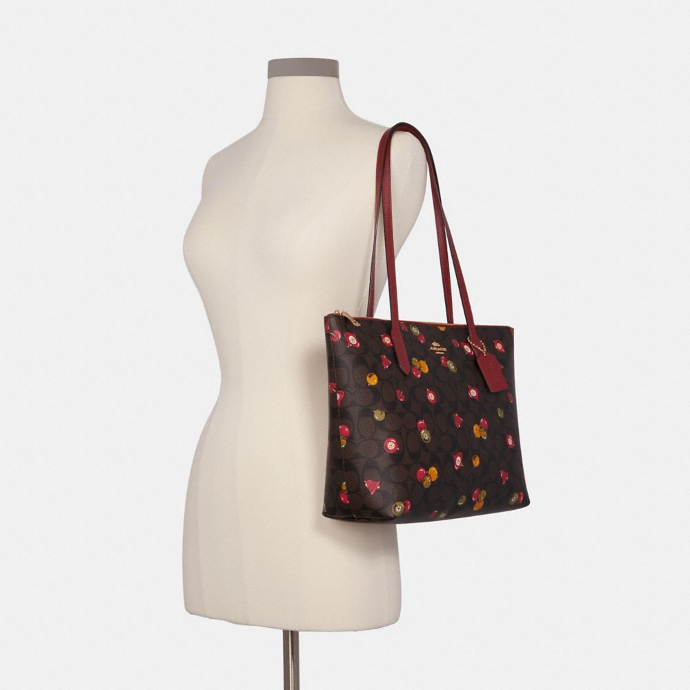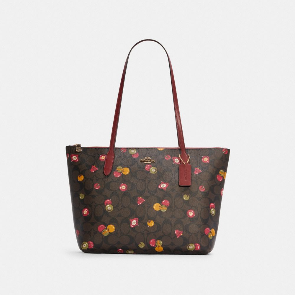 Zip Top Tote In Signature Canvas With Ornament Print