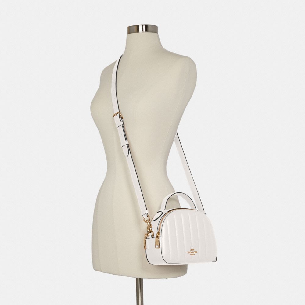 Nappa leather and smooth leather| Inside multifunction pocket| Double zip closure, fabric lining| Handle with 2" drop| Outside slip pocket| Detachable strap with 21" drop for shoulder or crossbody wear| 8 1/4" (L) x 5 3/4" (H) x 2 1/2" (W)Style No. C7259