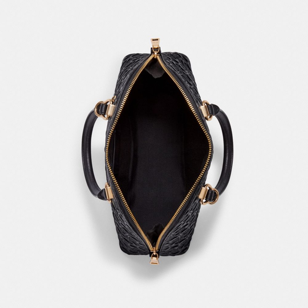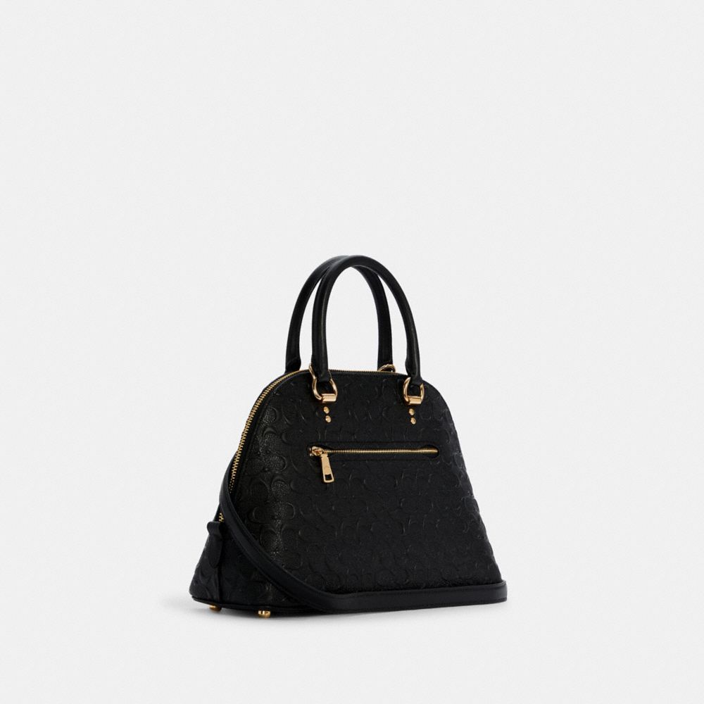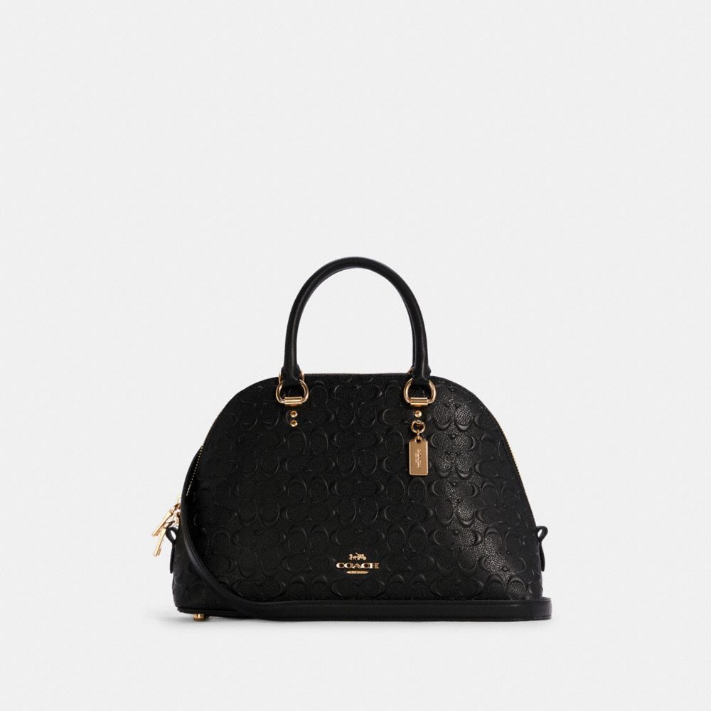 Signature smooth calf leather and smooth leather| Inside zip pocket| Zip closure, fabric lining| Handles with 3 3/4" drop| Outside zip pocket| Detachable strap with 22" drop for shoulder or crossbody wear| Four protective feet at base| 11 3/4" (L) x 7 3/4" (H) x 4" (W)Style No. C7279