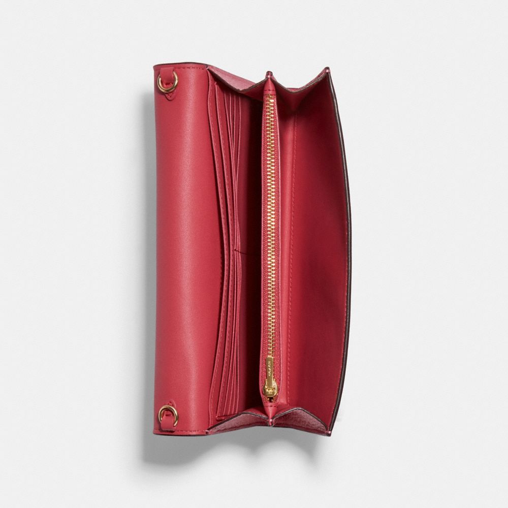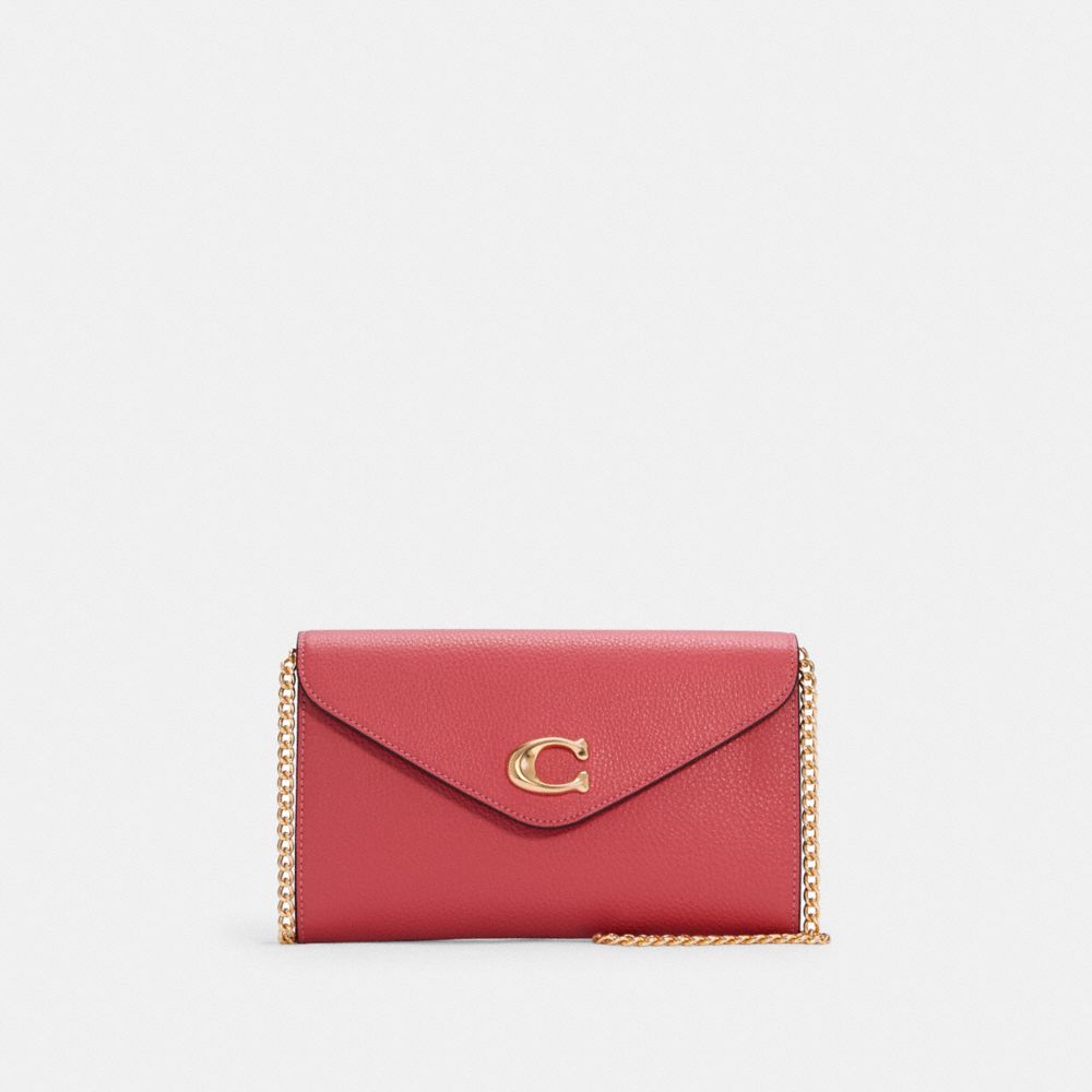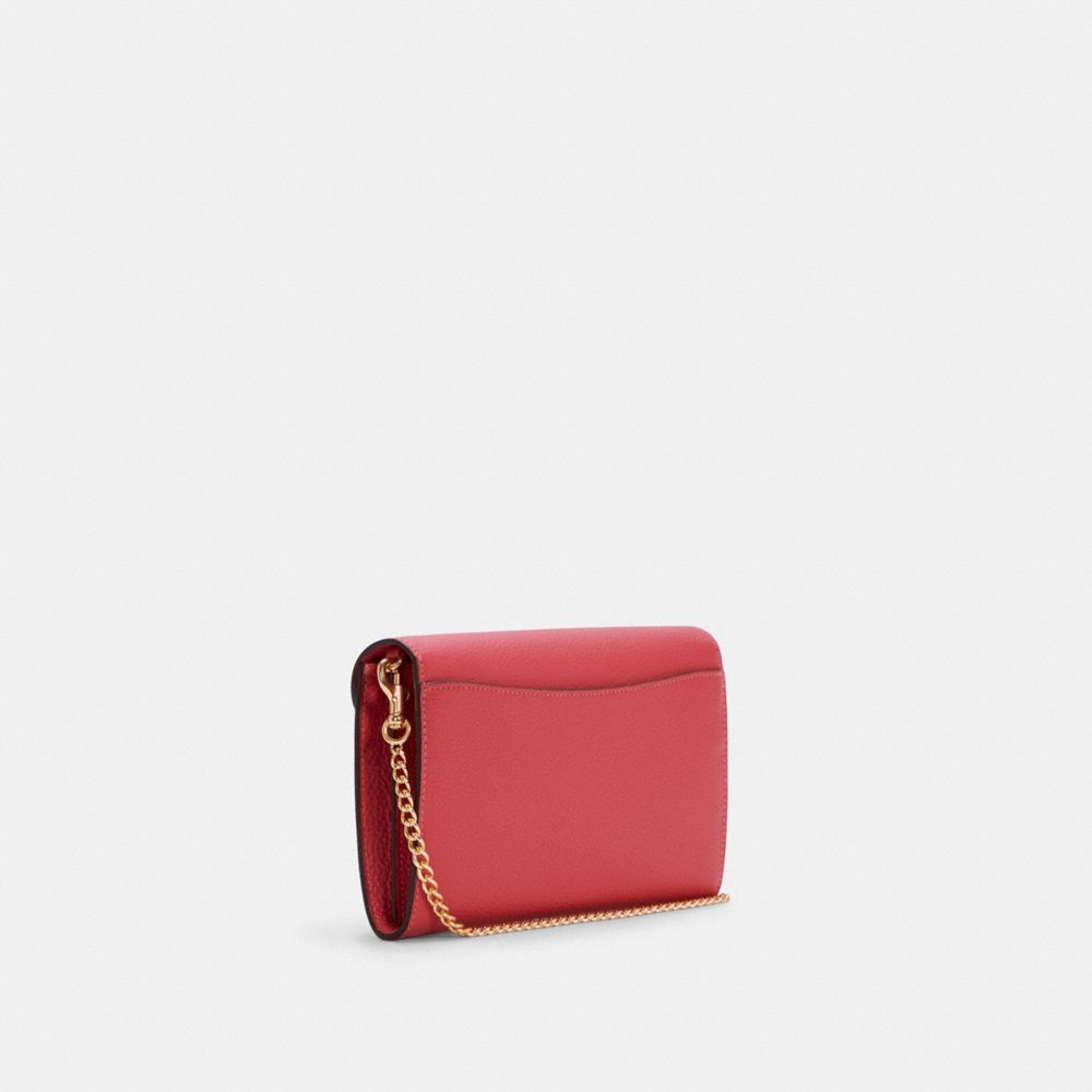 Refined pebble leather| Eight credit card slots| Full-length bill compartment| Inside zip and open pockets| Snap closure| Outside slip pocket| Detachable chain strap with 23" drop for shoulder or crossbody wear| 8 1/4" (L) x 5 1/4" (H) x 1 1/4" (W)Style No. C7300