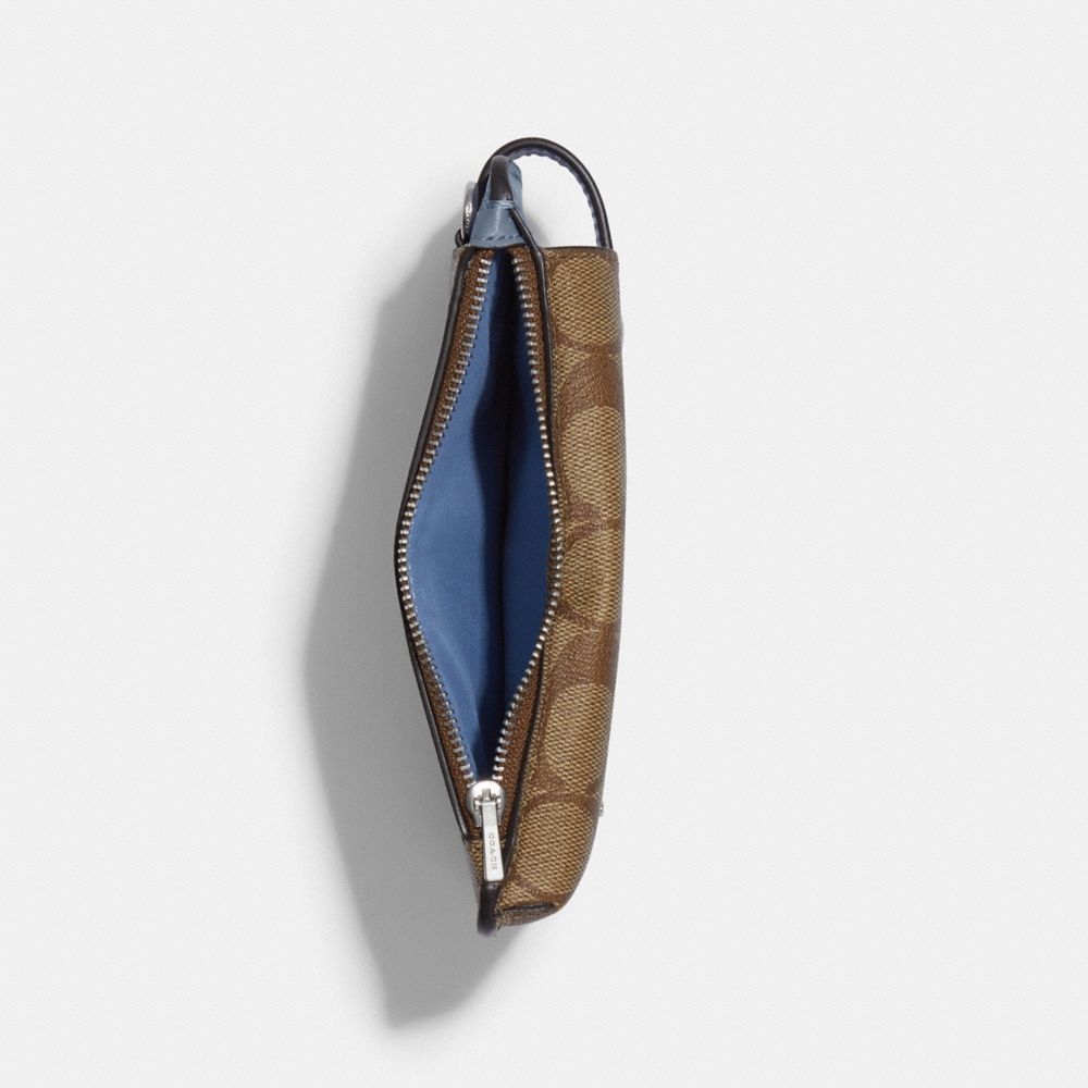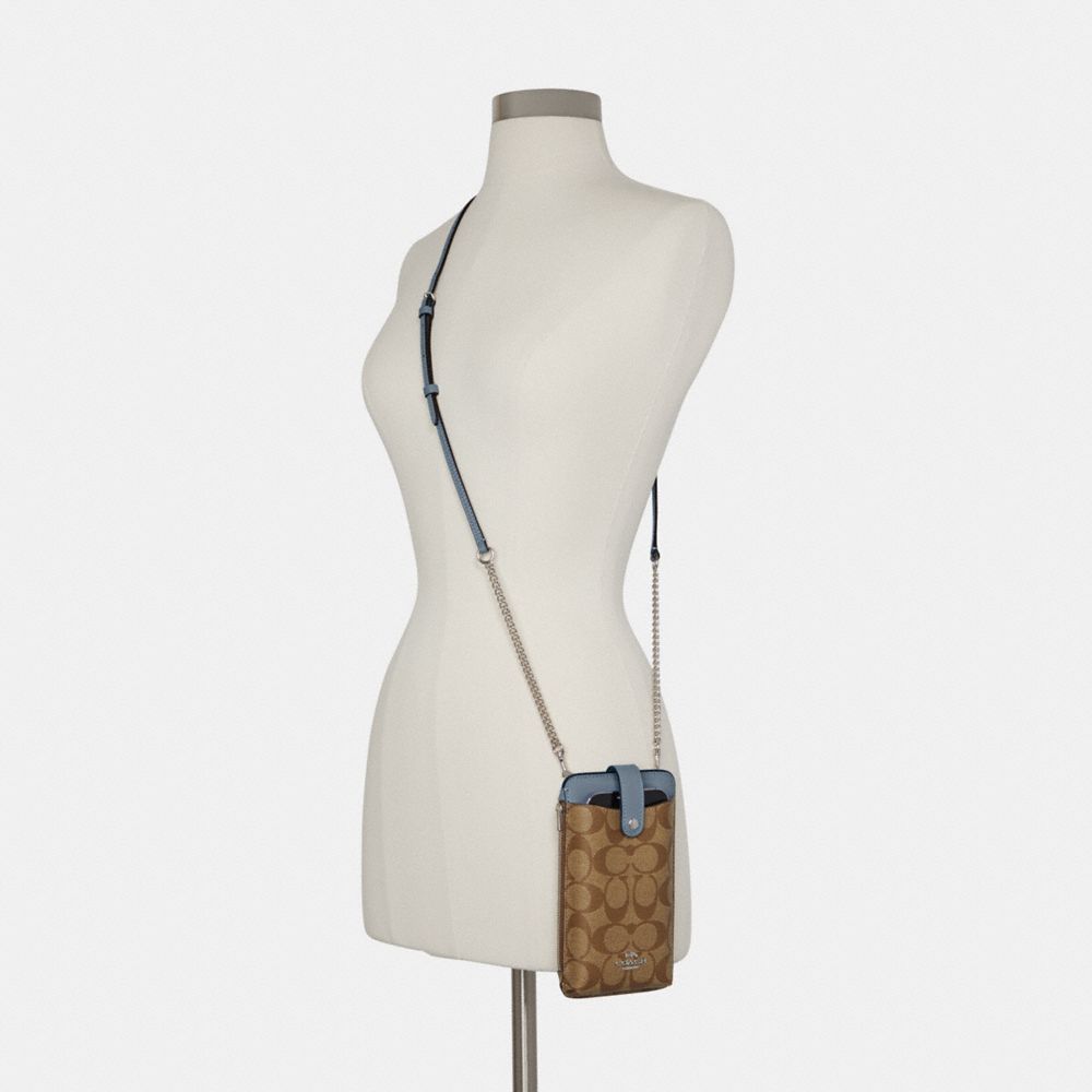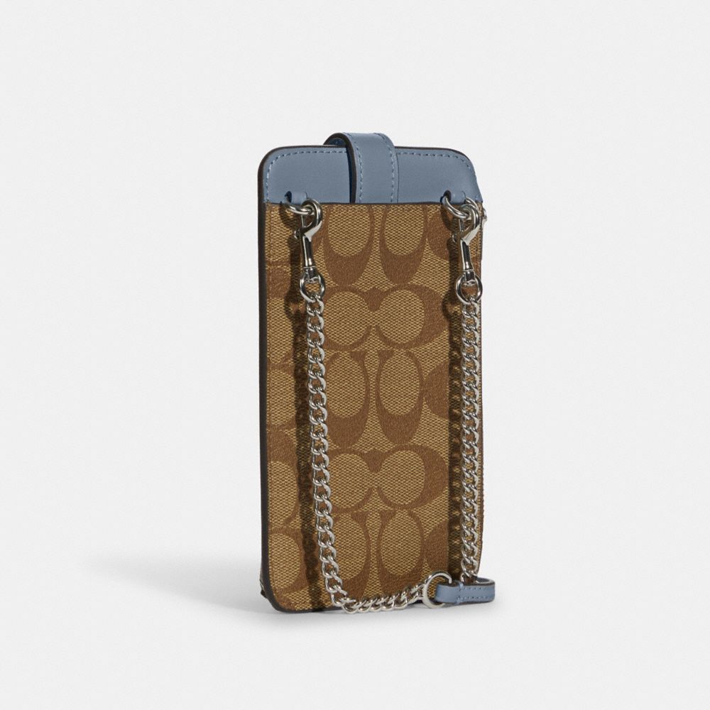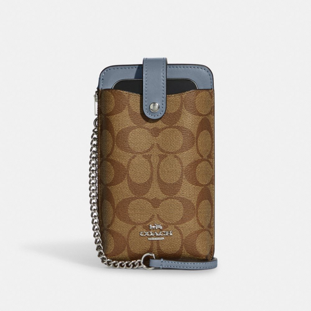 Signature coated canvas and smooth leather| Snap phone pocket| Zip coin pocket| Outside slip pocket| Detachable strap with 23" drop for shoulder or crossbody wear| 4" (L) x 7" (H) x 3/4" (W)Style No. C7397