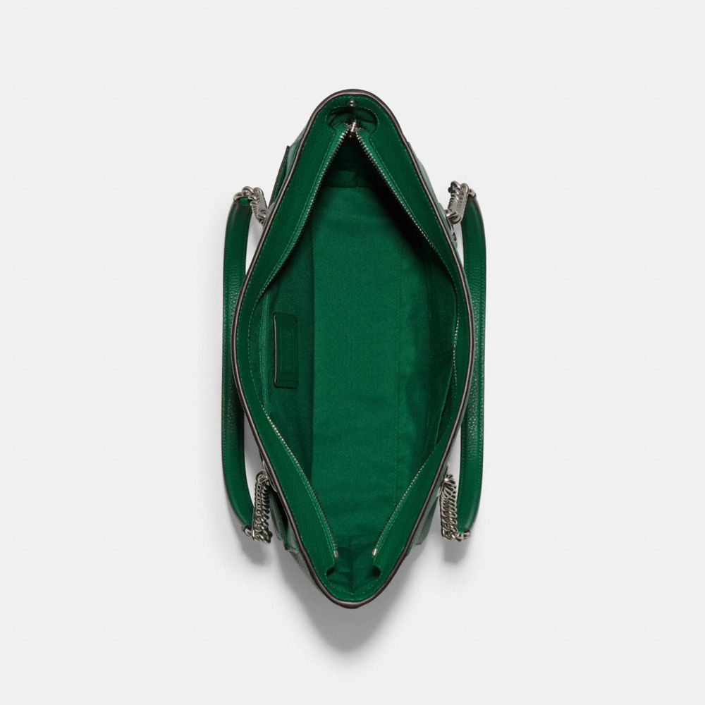 Refined pebble leather| Inside zip, cell phone and multifunction pockets| Zip-top closure, fabric lining| Handles with 11 1/4" drop| Outside open pocket| Four protective feet at base| 12 1/2" (L) x 10 1/2" (H) x 4 3/4" (W)Style No. C8147