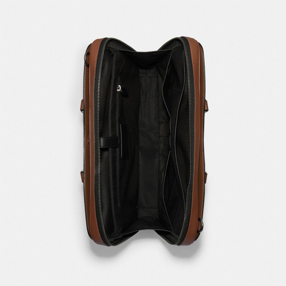 Smooth calf leather| Four credit card slots| Inside zip and multifunction pockets| Inside laptop sleeve with secure tab| Zip closure, fabric lining| Handles with 5" drop| Outside snap pockets| Detachable strap with 21" drop for shoulder or crossbody wear| 15 1/2" (L) x 11" (H) x 2 1/4" (W)Style No. C8170