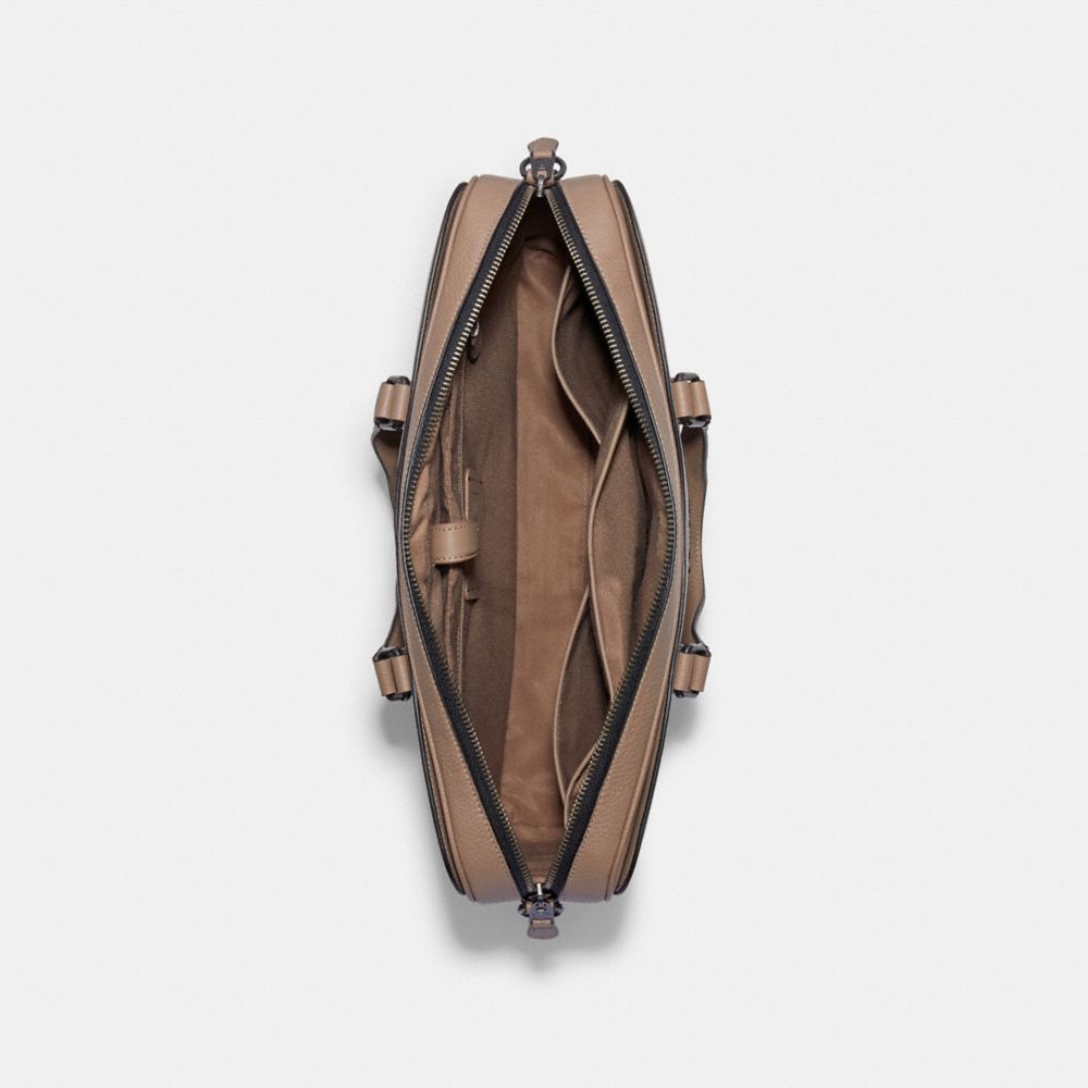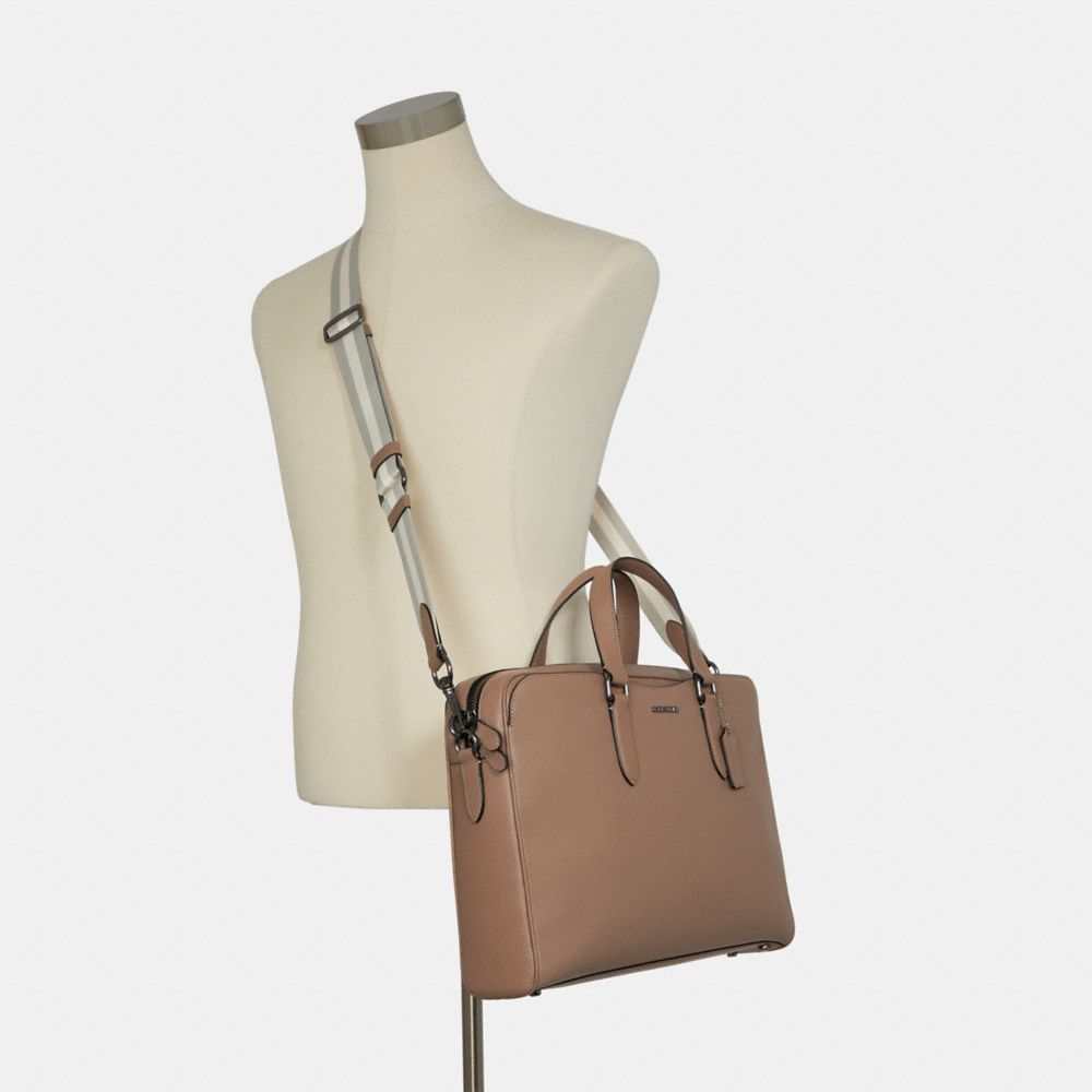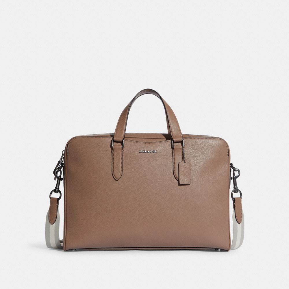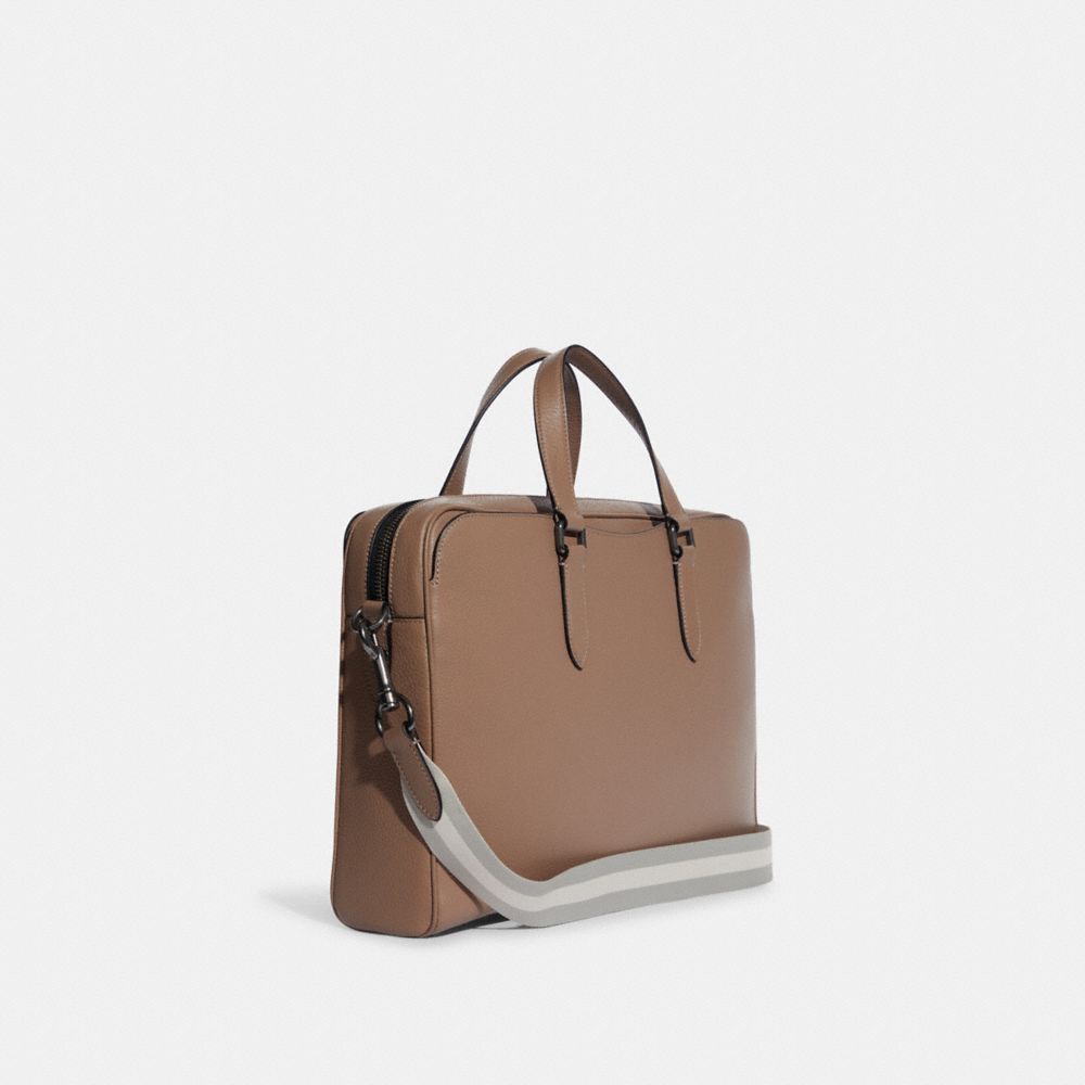 Refined pebble leather| Four credit card slots| Inside zip and multifunction pockets| Inside laptop sleeve with secure tab| Zip closure, fabric lining| Handles with 5" drop| Outside snap pockets| Detachable strap with 25" drop for shoulder or crossbody wear| Four protective feet at base| 15 1/2" (L) x 11" (H) x 3 1/4" (W)Style No. C8174