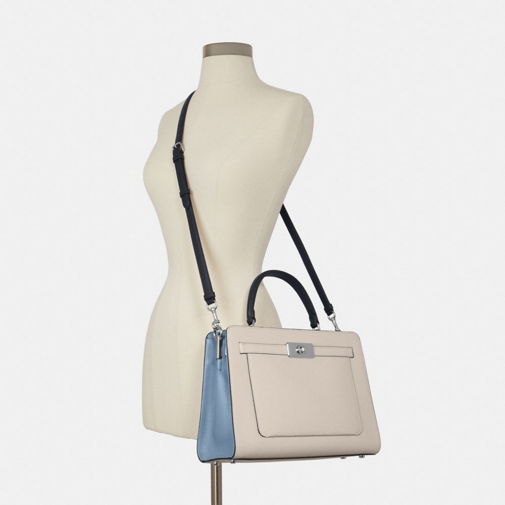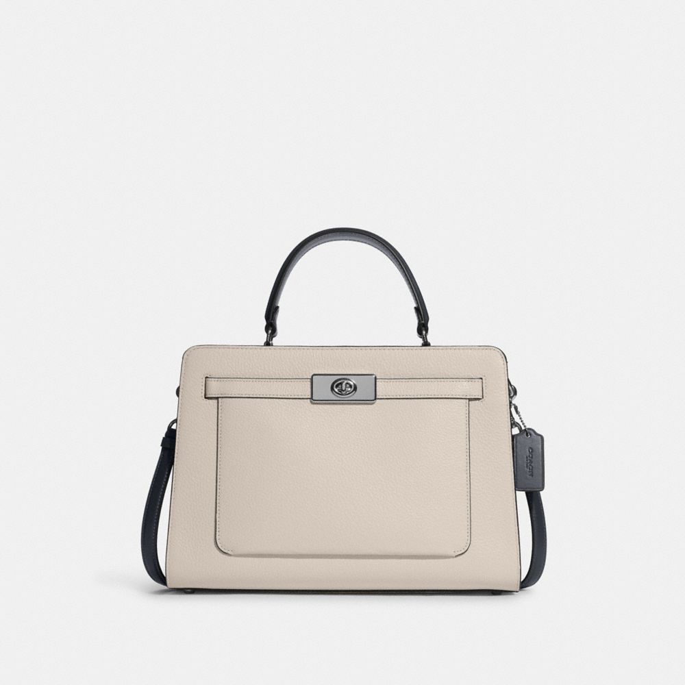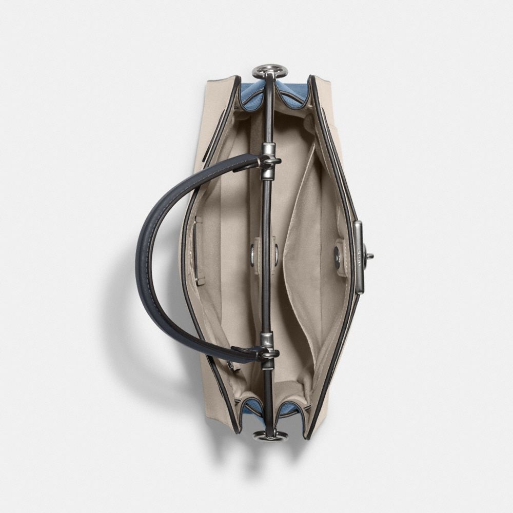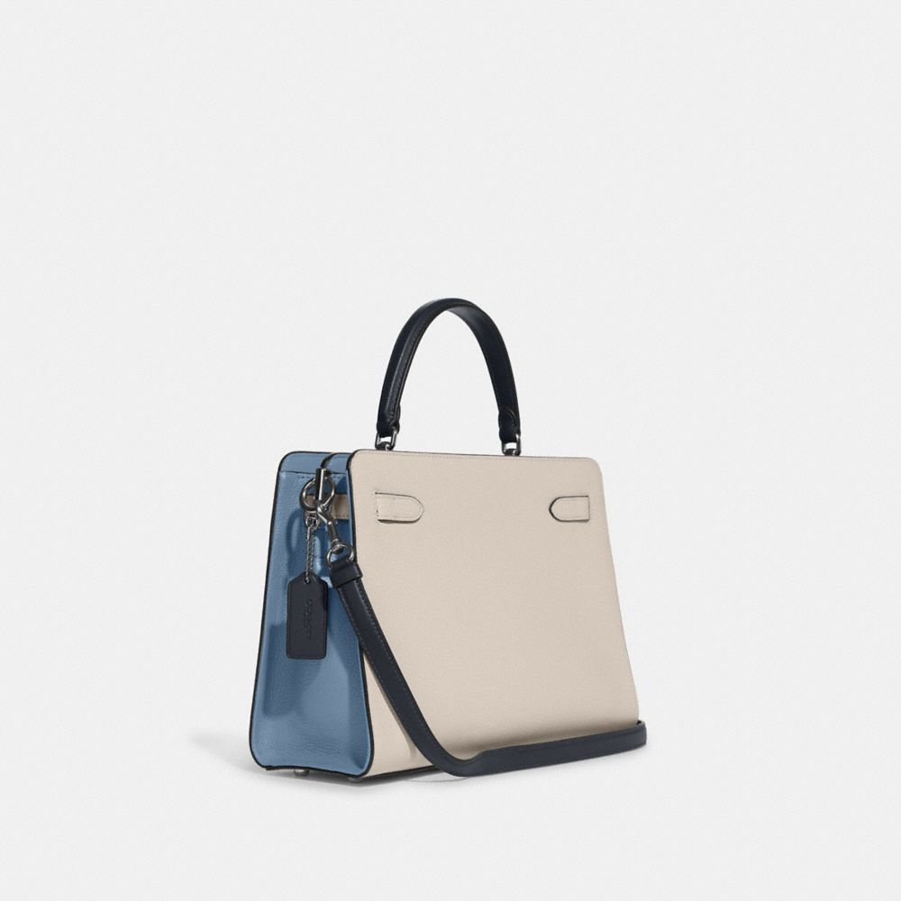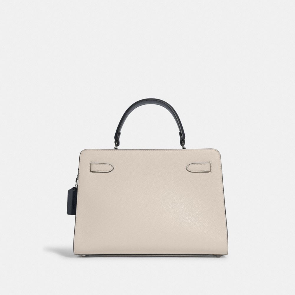 Refined pebble leather and smooth leather| Inside zip and multifunction pockets| Snap closures, fabric lining| Handle with 4 1/4" drop| Outside open pocket| Detachable strap with 20 1/2" drop for shoulder or crossbody wear| Four protective feet at base| 12 1/2" (L) x 8 3/4" (H) x 4 3/4" (W)Style No. C8210