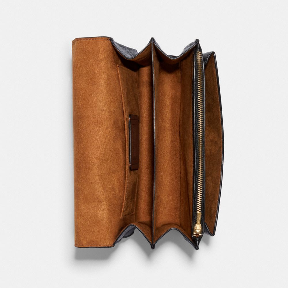 Refined pebble leather and smooth leather| Inside zip and multifunction pockets| Snap closure, fabric lining| Outside slip pocket| Strap with 22" drop doubles up for three ways to wear: short or long on the shoulder or crossbody style| 8 1/2" (L) x 6 1/4" (H) x 2 3/4" (W)Style No. C8283