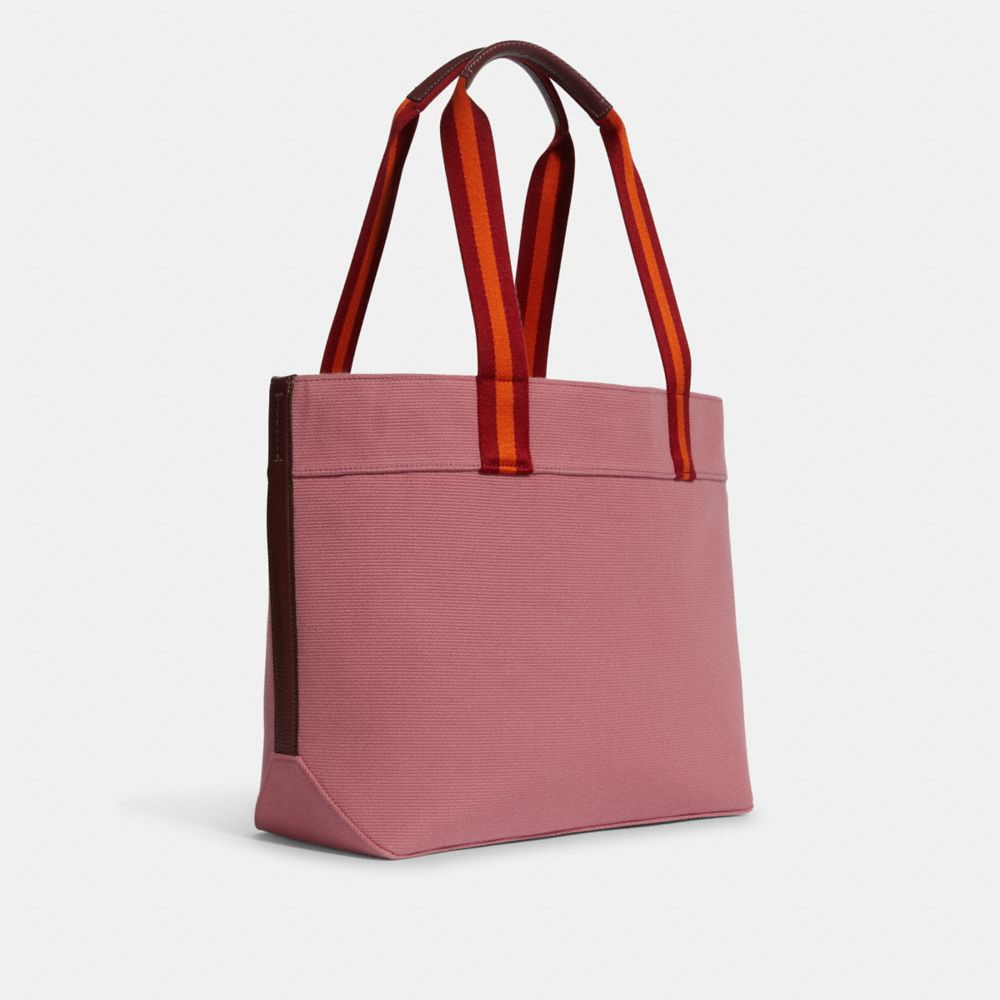 Canvas and refined pebble leather| Inside zip, cell phone and multifunction pockets| Snap closure, fabric lining| Handles with 10" drop| 13" (L) x 11 3/4" (H) x 6" (W)Style No. C8293