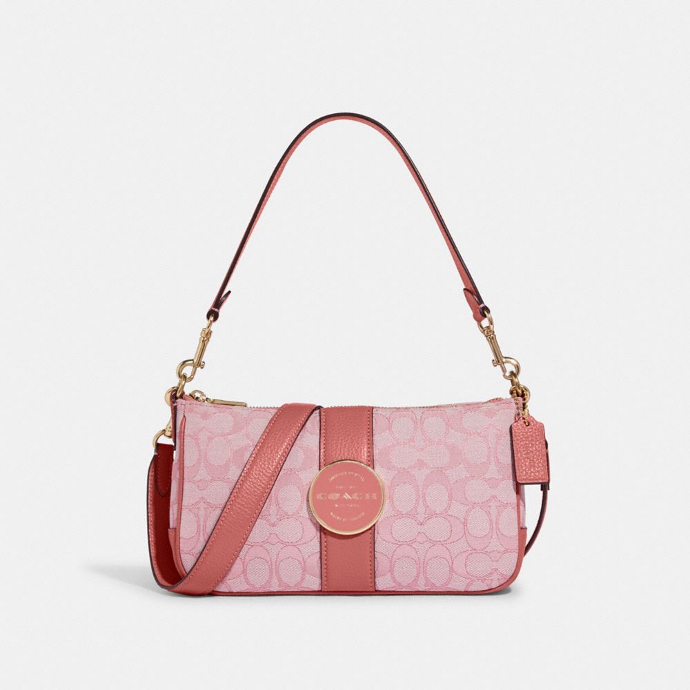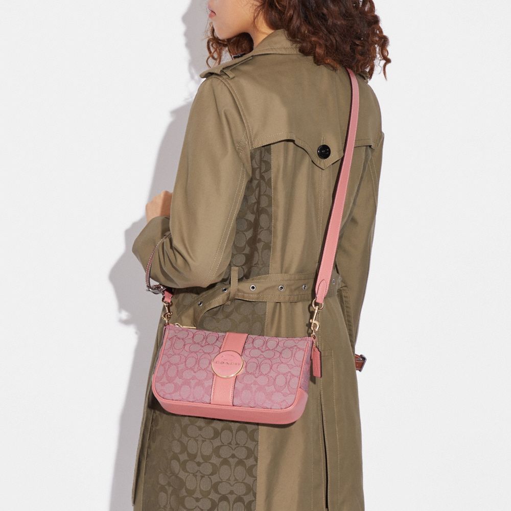 Signature jacquard and refined pebble leather| Inside multifunction pocket| Zip-top closure, fabric lining| Detachable handle with 8 1/4" drop| Detachable strap with 22" drop for shoulder or crossbody wear| 9 3/4" (L) x 5 3/4" (W) x 2 3/4" (W)Style No. C8306