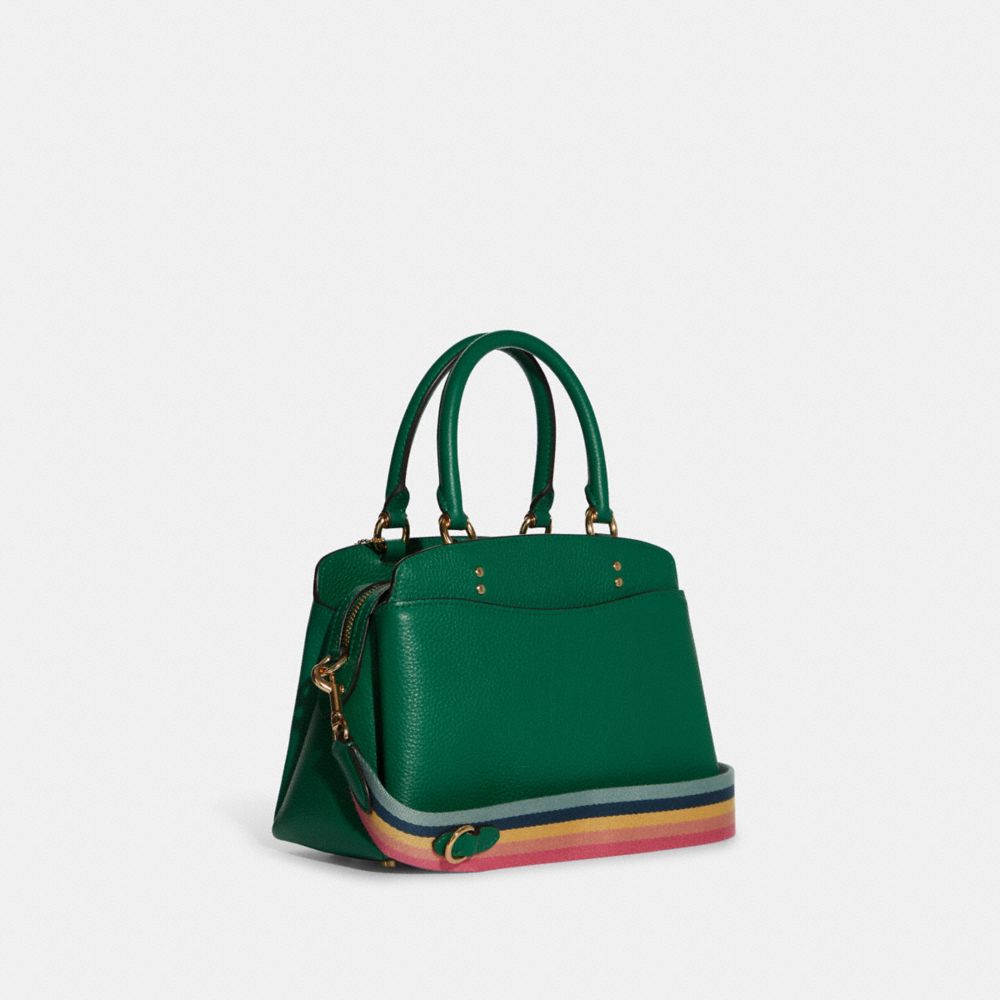 Refined pebble leather and smooth leather| Center zip compartment| Snap closure, fabric lining| Handles with 4 1/4" drop| Outside open pocket| Detachable strap with 21 1/2" drop for shoulder or crossbody wear| 10 1/4" (L) x 6 3/4" (H) x 4 1/4" (W)Style No. C8364