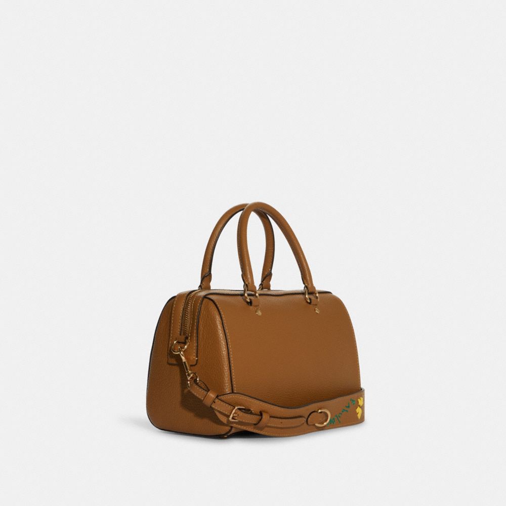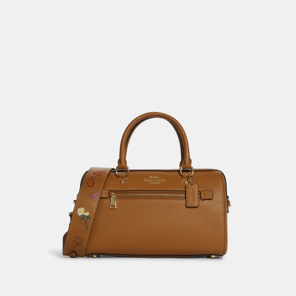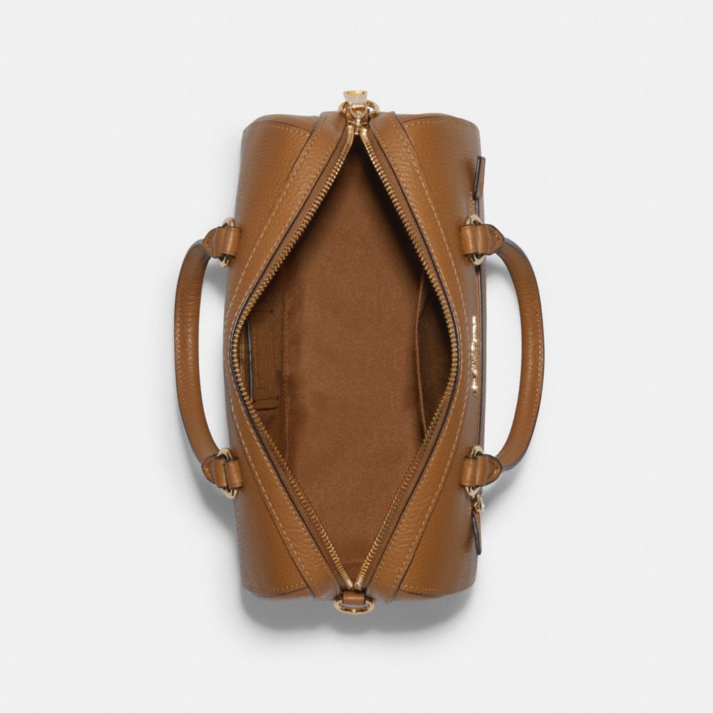 Refined pebble leather and smooth leather| Inside zip and multifunction pockets| Zip closure, fabric lining| Handles with 4 1/4" drop| Outside zip pocket| Detachable strap with 23" drop for shoulder or crossbody wear| Four protective feet at base| 10 1/2" (L) x 6 1/4" (H) x 5 1/2" (W)Style No. C8496