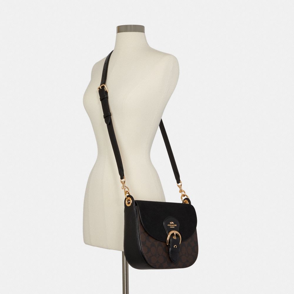 Signature coated canvas, suede, smooth leather and refined pebble leather| Inside multifunction pocket| Snap closure, fabric lining| Detachable handle with 9 1/4" drop| Outside zip pocket| Detachable strap with 22 1/2" drop for shoulder or crossbody wear| 9" (L) x 8" (H) x 3 1/4" (W)Style No. C8515