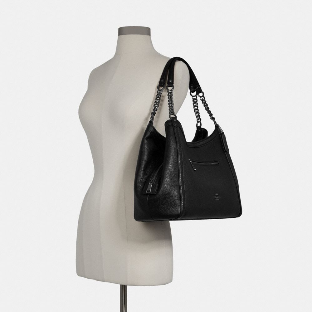 Refined pebble leather| Inside zip, cell phone and multifunction pockets| Center zip compartment| Snap closure, fabric lining| Handles with 9 1/2" drop| Outside zip pocket| 12 1/2" (L) x 10 3/4" (H) x 5 3/4" (W)Style No. C8532