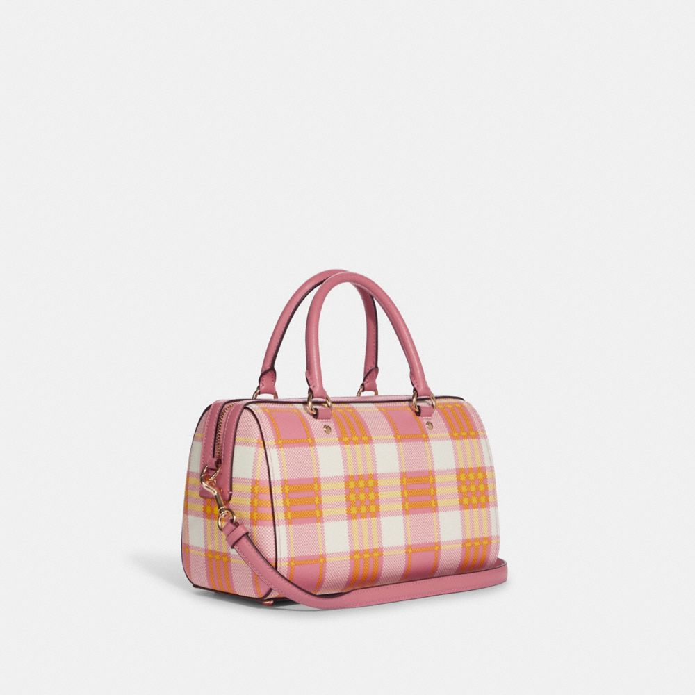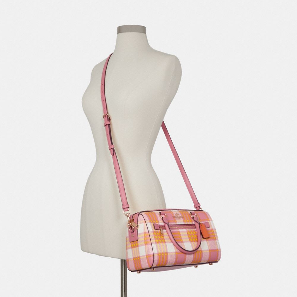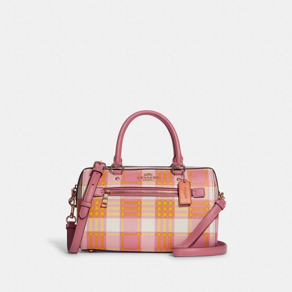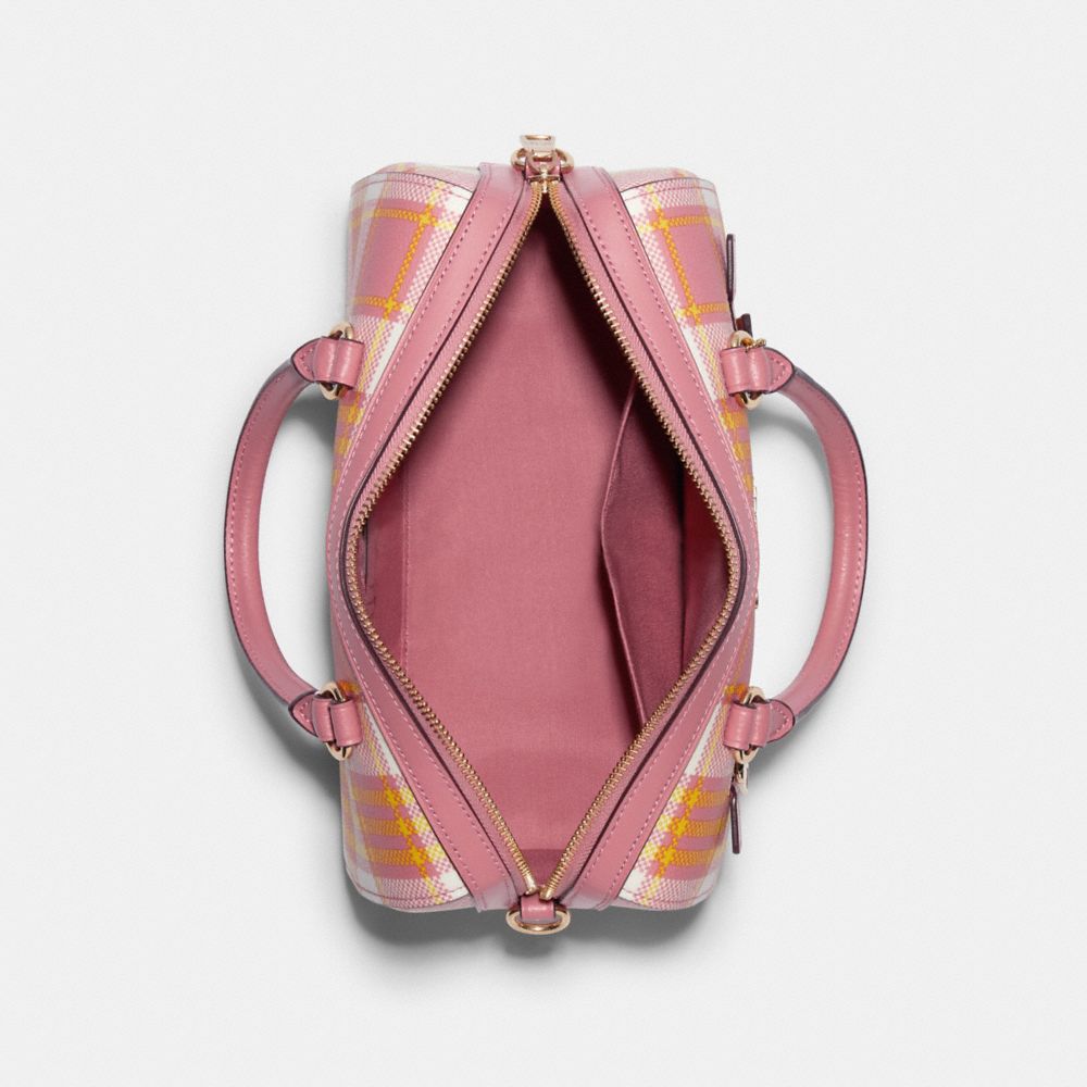 Printed coated canvas and smooth leather| Inside zip and multifunction pockets| Zip closure, fabric lining| Handles with 4 1/4" drop| Outside zip pocket| Detachable strap with 23" drop for shoulder or crossbody wear| Four protective feet at base| 10 1/2" (L) x 6 1/4" (H) x 5 1/2" (W)Style No. C8593