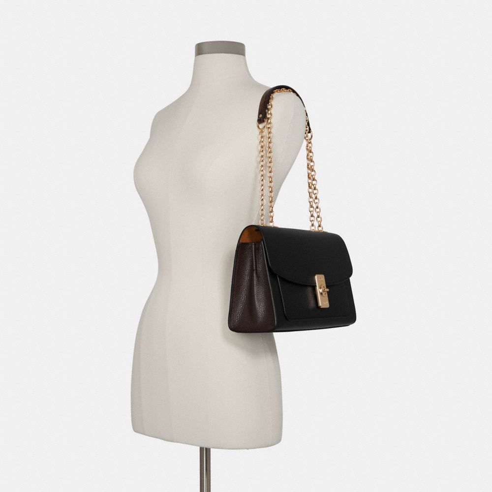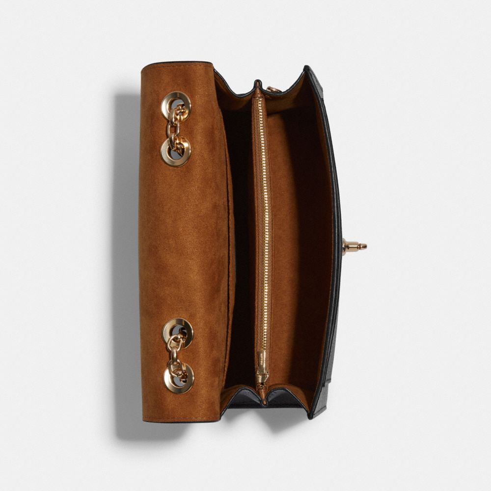 Refined pebble leather and snake-embossed leather| Inside multifunction pocket| Center zip compartment| Turnlock closure, fabric lining| Outside open pocket| Handles convert to shoulder strap with 19 1/4" drop| 10 1/4" (L) x 7" (H) x 4" (W)Style No. C8595