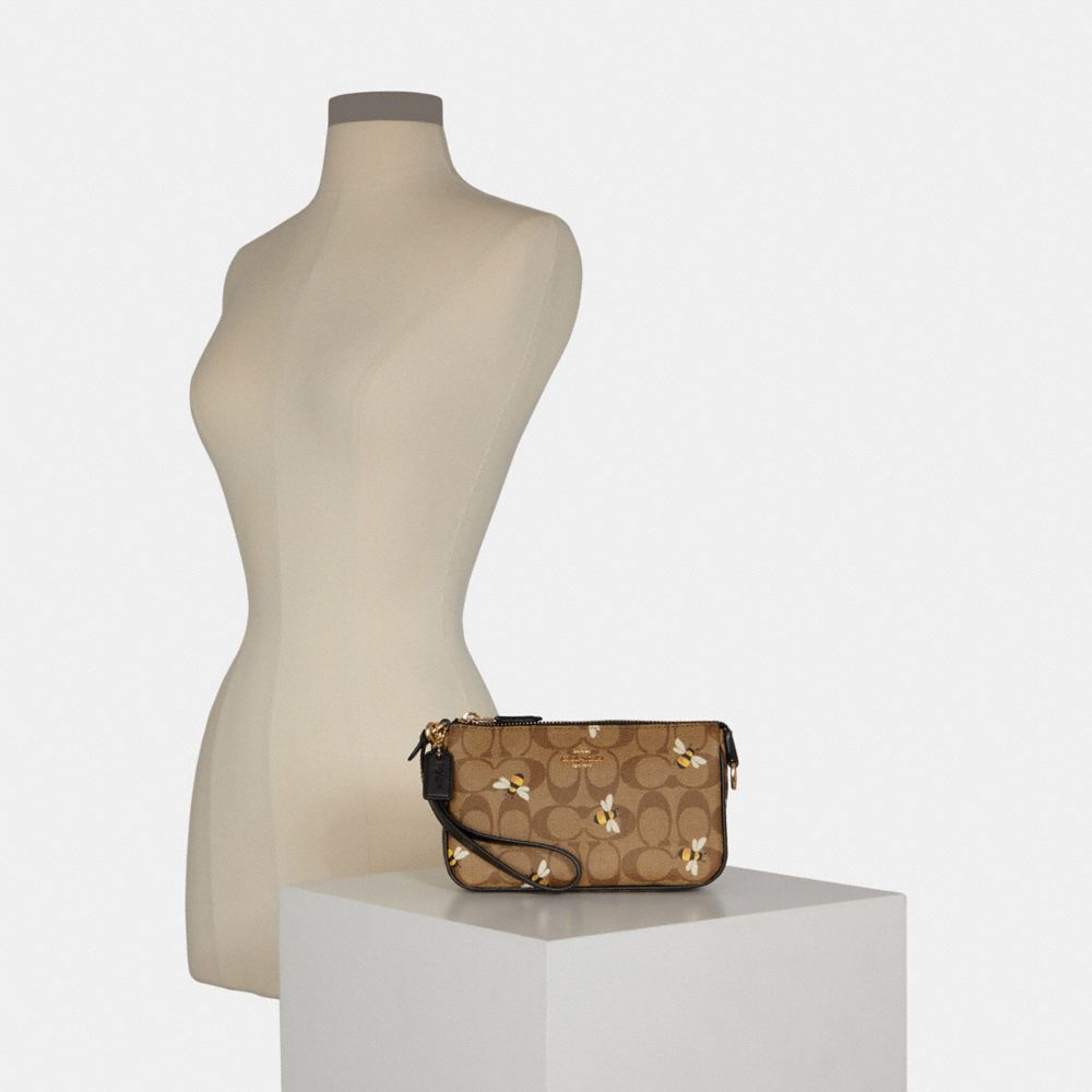 Signature coated canvas and smooth leather| Two credit card slots| Inside multifunction pocket| Zip-top closure, fabric lining| Handle with 6 1/4" drop| 7 1/2" (L) x 4 1/2" (H) x 2" (W)Style No. C8673