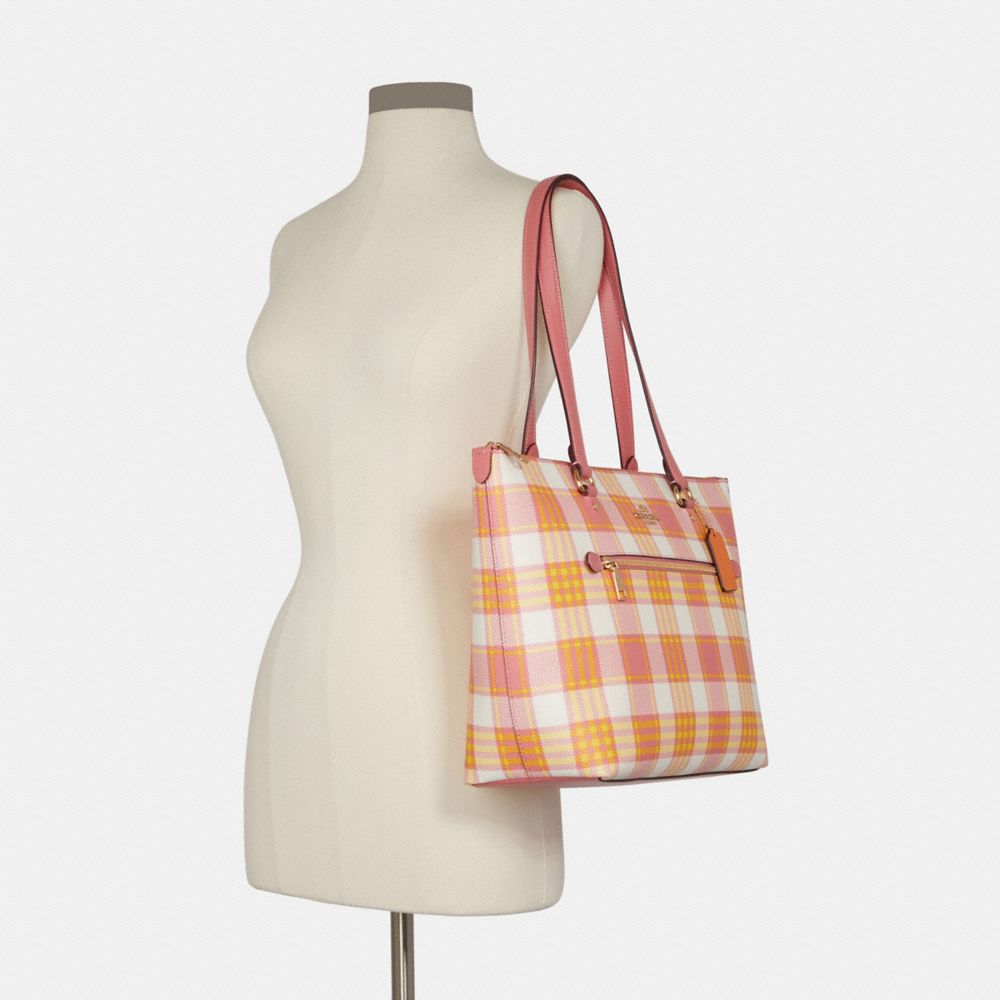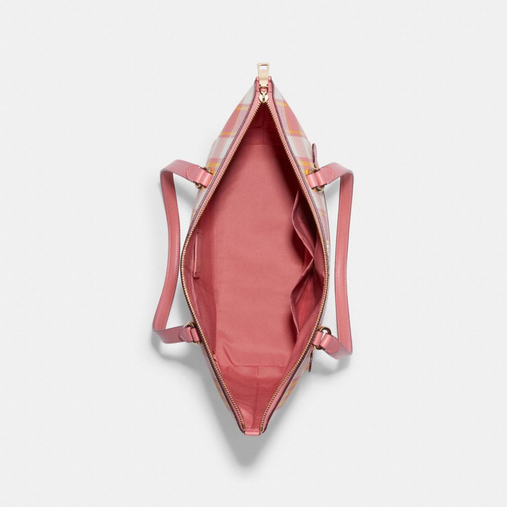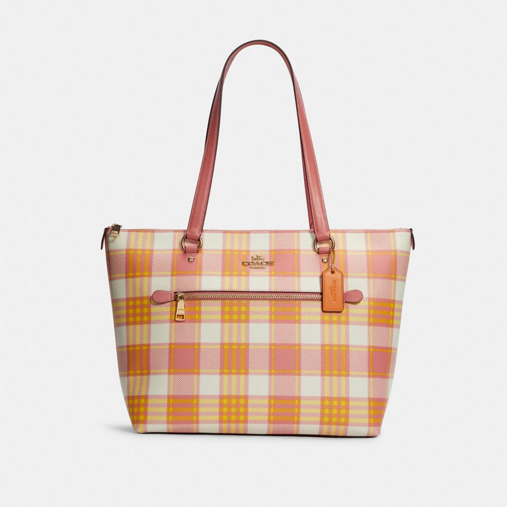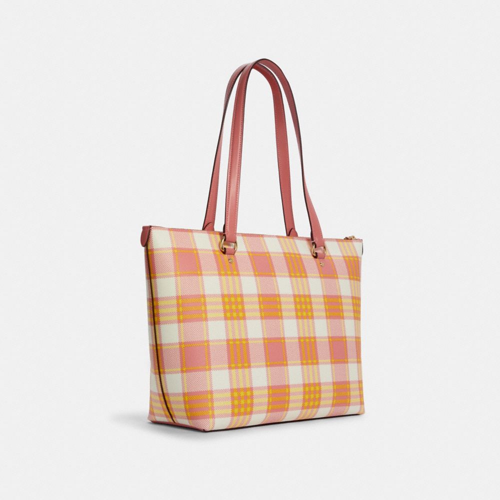 Printed coated canvas and smooth leather| Inside zip, cell phone and multifunction pockets| Zip-top closure, fabric lining| Handles with 10 1/4" drop| Outside zip pocket| 12 3/4" (L) x 10 1/2" (H) x 5 1/2" (W)Style No. C8755