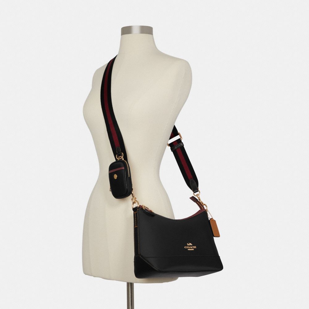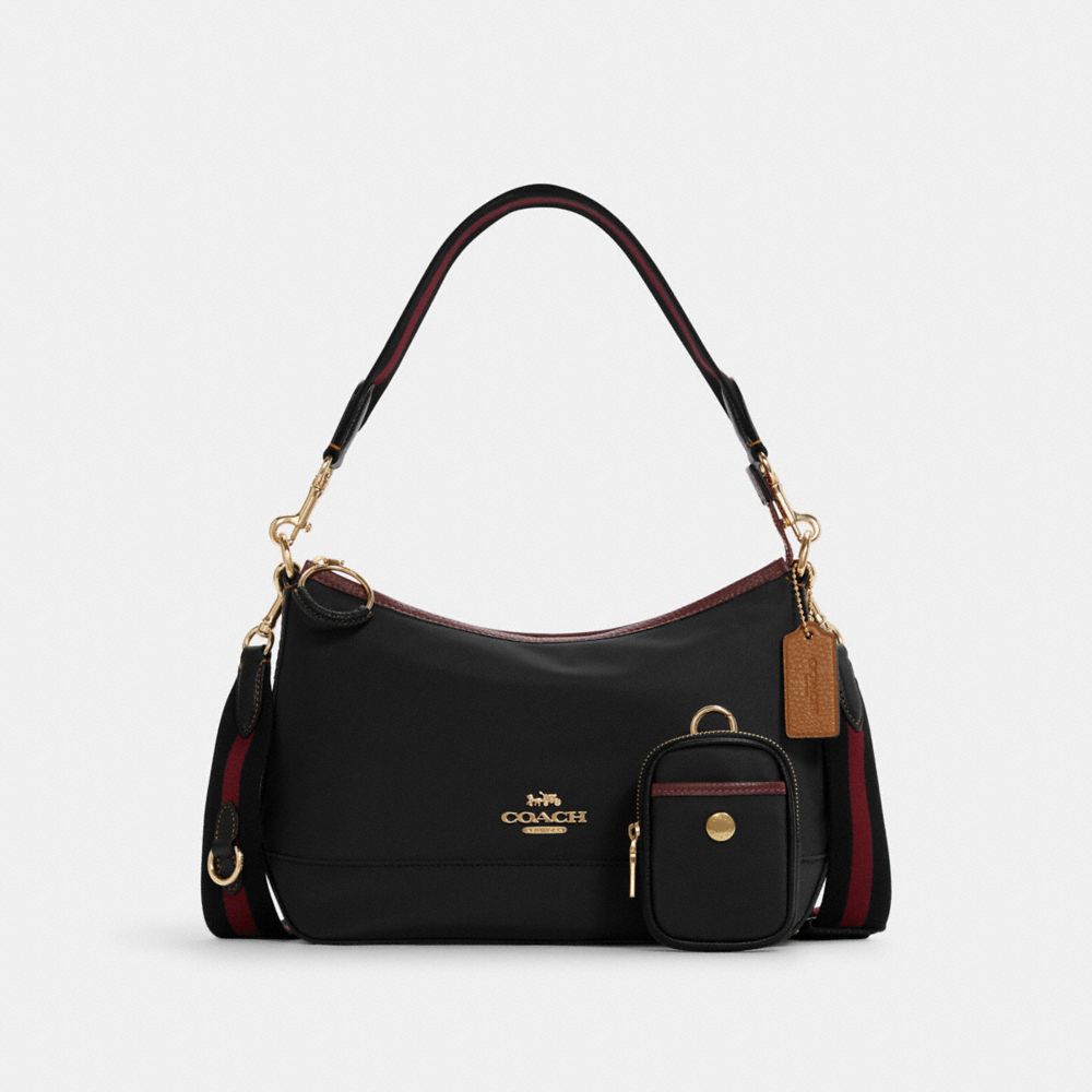 Recycled nylon and refined calf leather| Inside zip and multifunction pockets| Zip-top closure, fabric lining| Outside open pocket| Detachable strap with 25" drop for shoulder or crossbody wear| Detachable zip pouch| 10" (L) x 8 1/2" (H) x 4 1/4" (W)Style No. C9443