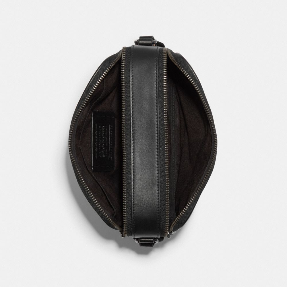 Signature coated canvas and refined calf leather| Inside multifunction pockets| Double zip closure, fabric lining| Outside slip pocket| Adjustable strap with 25" drop for shoulder or crossbody wear| 9" (L) x 5 3/4" (H) x 2 3/4" (W)Style No. C9965