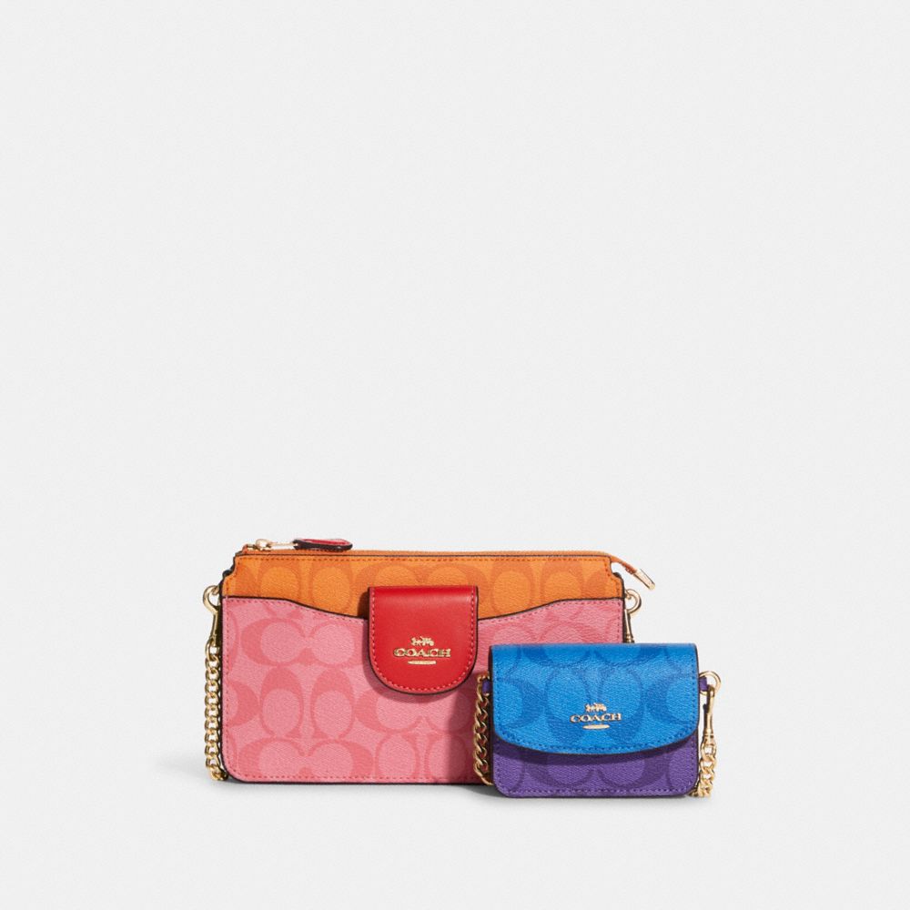 Poppy Crossbody With Card Case In Blocked Signature Canvas