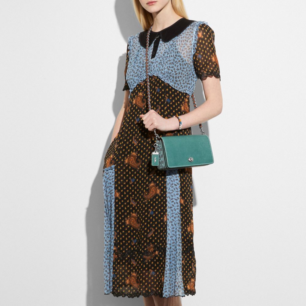 Glovetanned leather with genuine snakeskin detail| Inside open and coin purse pockets| Turnlock closure, leather lining| Outside slip pocket| Detachable strap with 22" drop doubles up for three ways to wear: short or long on the shoulder or crossbody style| 9" (L) x 5" (H) x 2" (W)