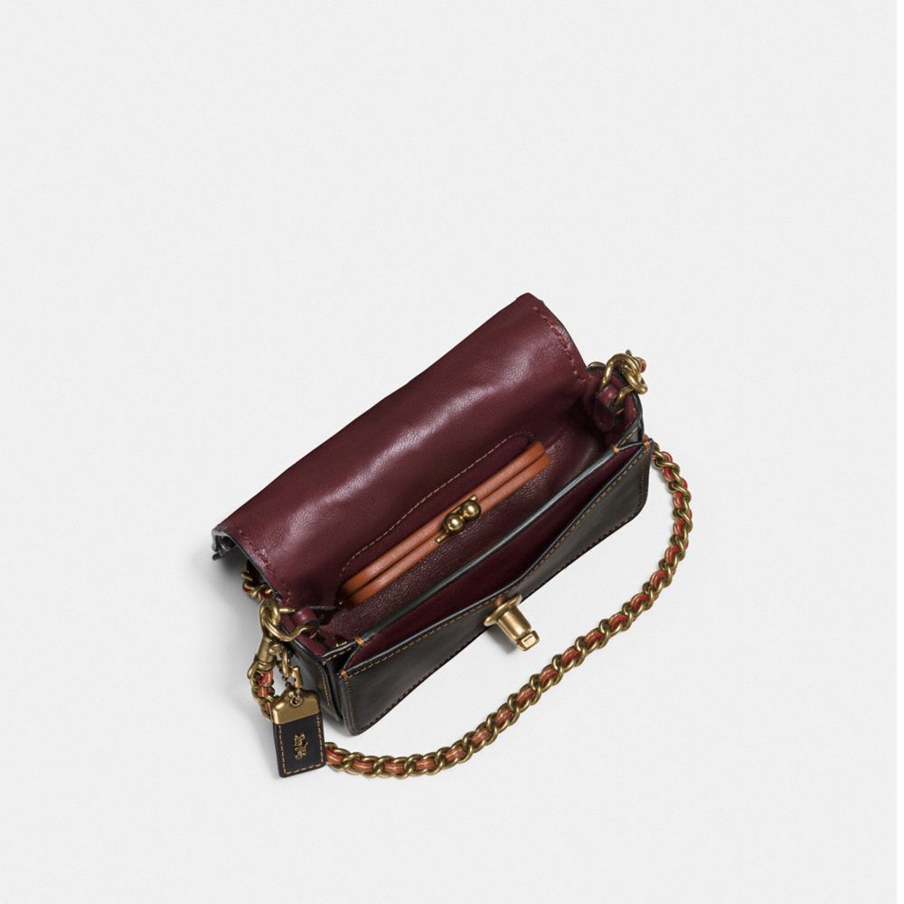 Glovetanned leather| Inside open and coin purse pockets| Turnlock closure, leather lining| Outside slip pocket| Detachable strap with 22" drop doubles up for three ways to wear: short or long on the shoulder or crossbody style| 6" (L) x 3 1/4" (H) x 1 3/4" (W)