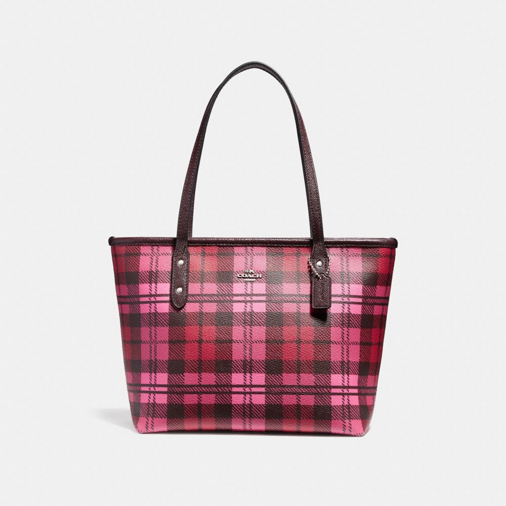 MINI CITY ZIP TOTE WITH SHADOW PLAID PRINT