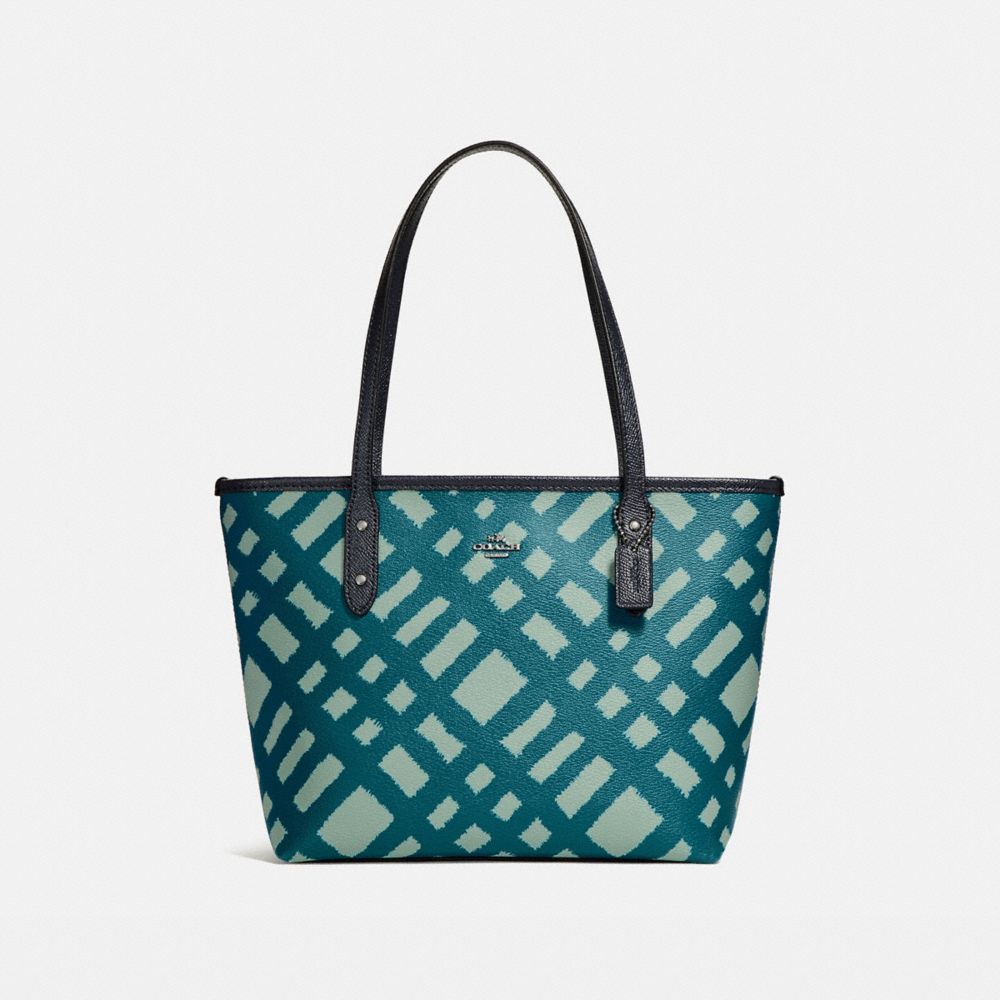 MINI CITY ZIP TOTE WITH WILD PLAID PRINT