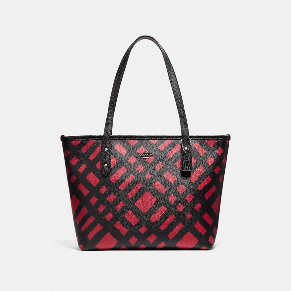 MINI CITY ZIP TOTE WITH WILD PLAID PRINT