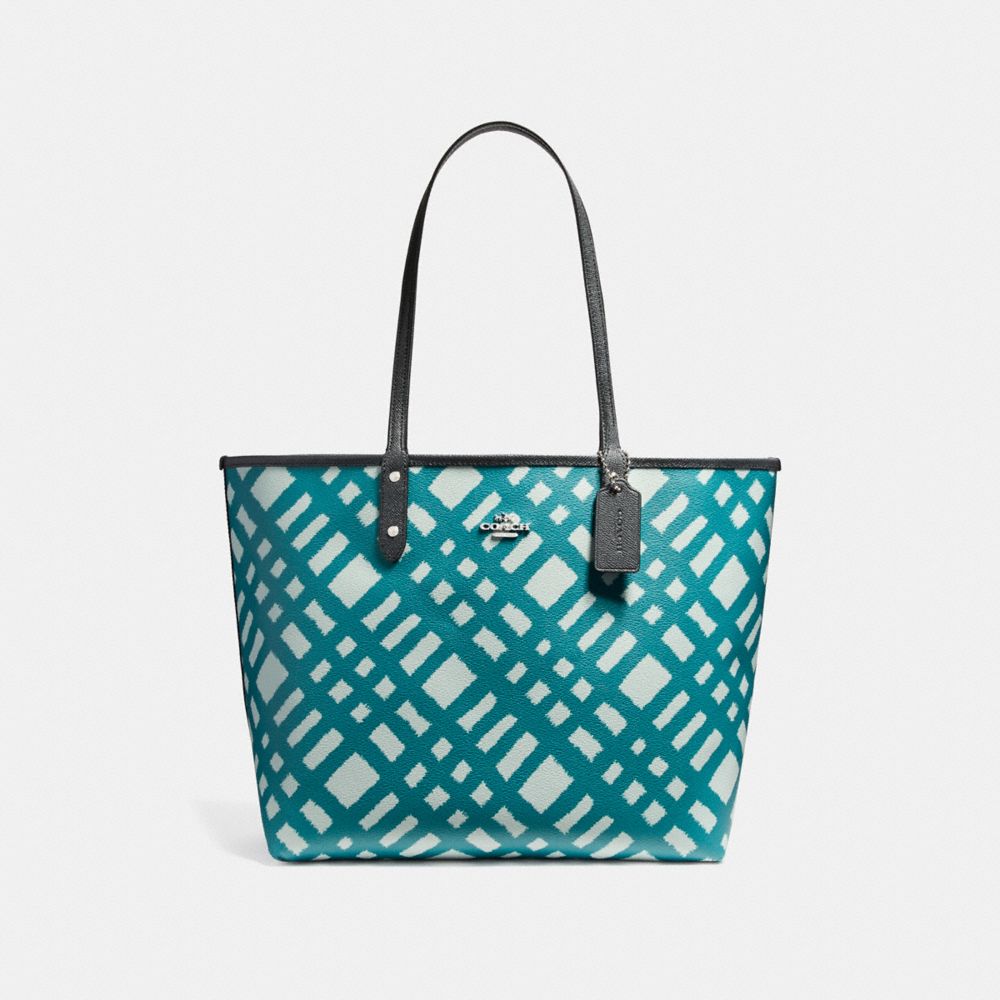 REVERSIBLE CITY TOTE WITH WILD PLAID PRINT