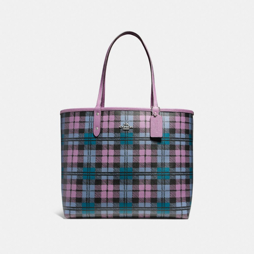 REVERSIBLE CITY TOTE WITH SHADOW PLAID PRINT
