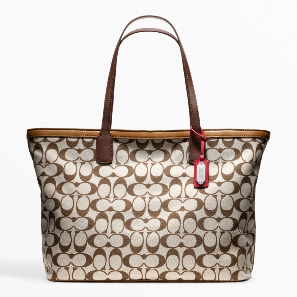 WEEKEND PRINTED SIGNATURE ZIP TOP TOTE