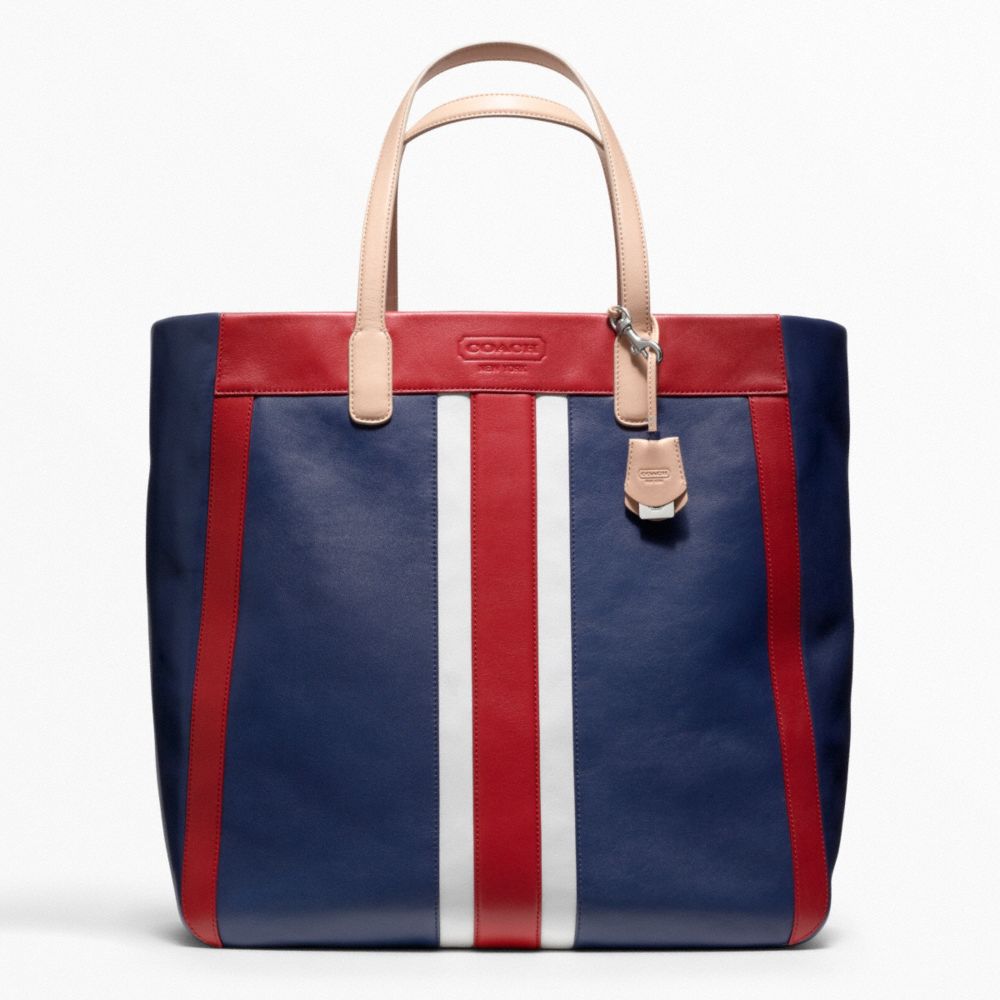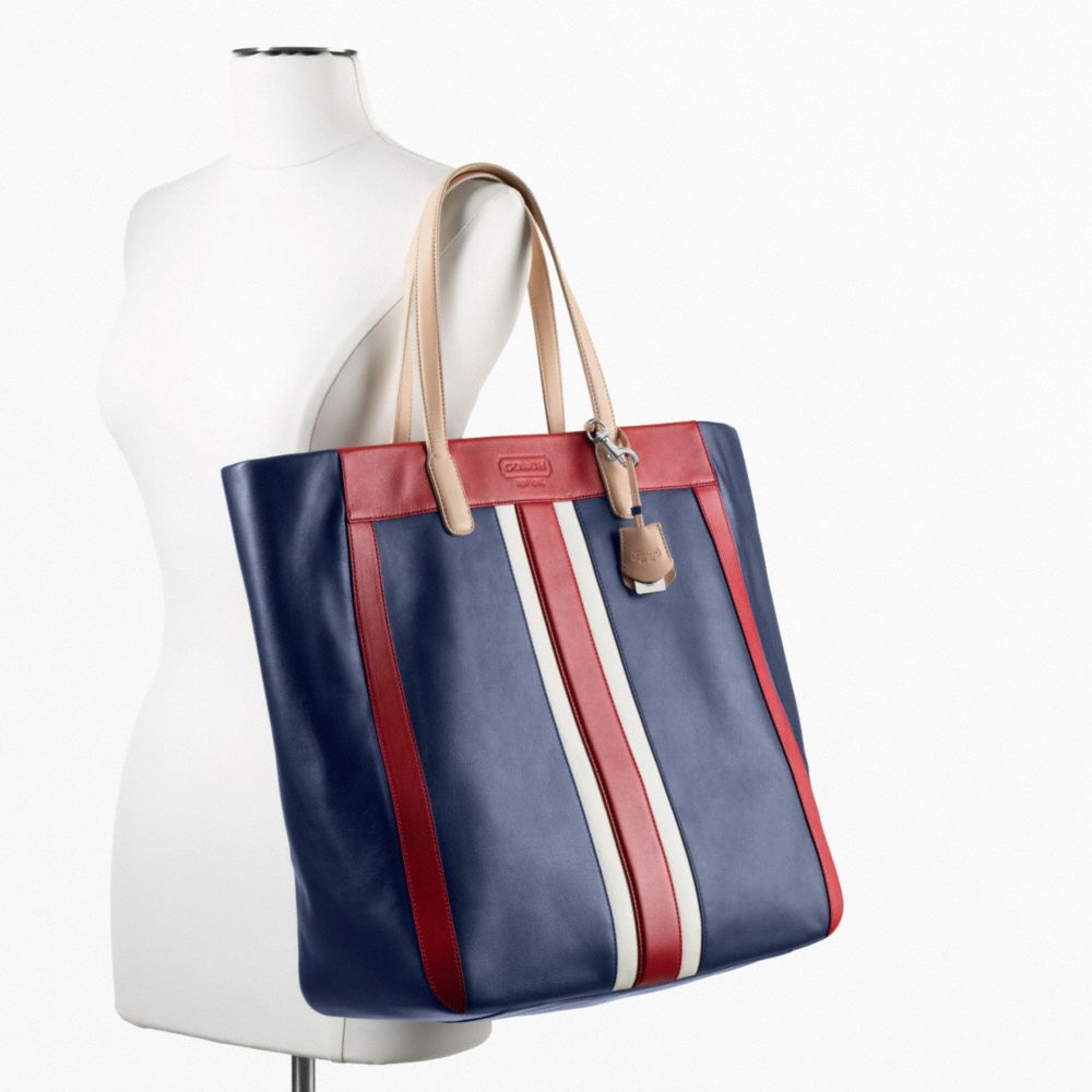 WEEKEND BEACH LEATHER STRIPE LARGE NORTH/SOUTH TOTE