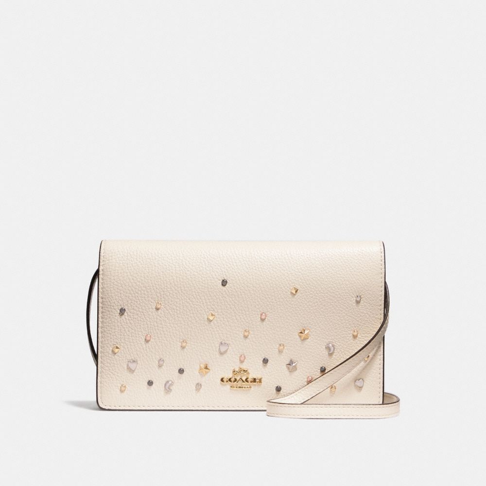 FOLDOVER CROSSBODY CLUTCH WITH STARDUST STUDS