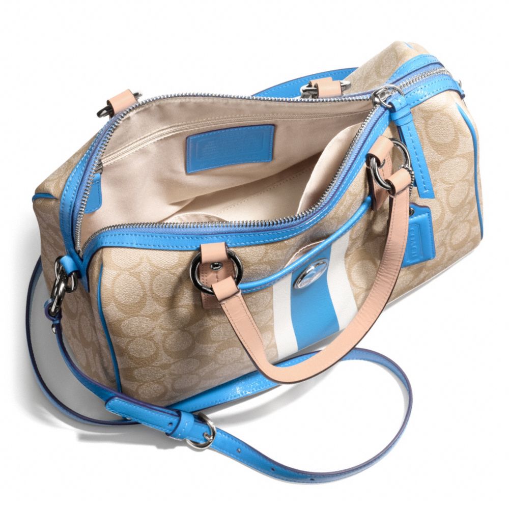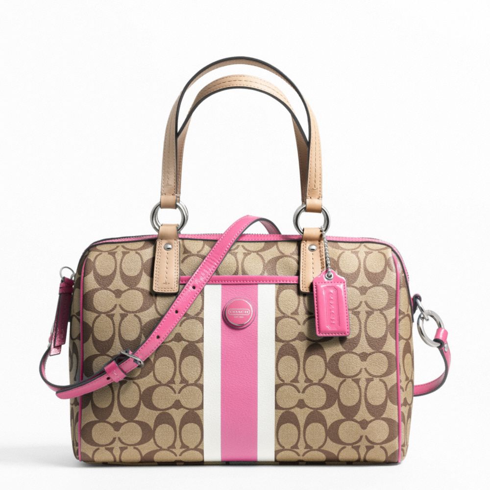 SIGNATURE STRIPE PVC STRIPE SATCHEL