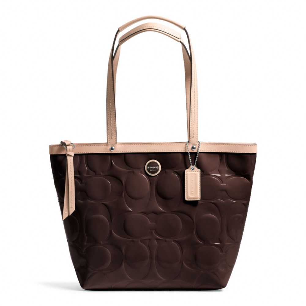 SIGNATURE STRIPE EMBOSSED PATENT TOTE