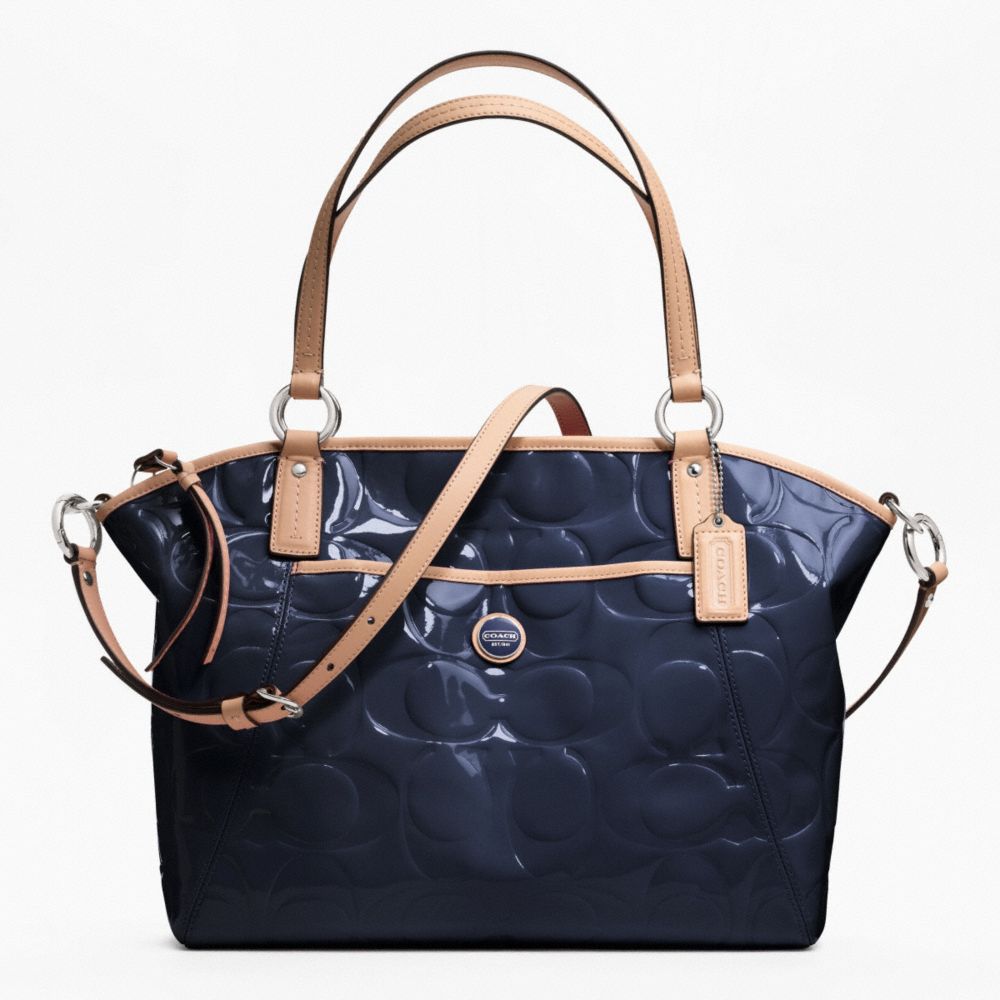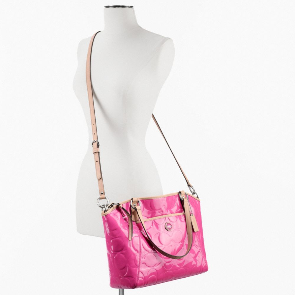 SIGNATURE STRIPE EMBOSSED PATENT POCKET TOTE