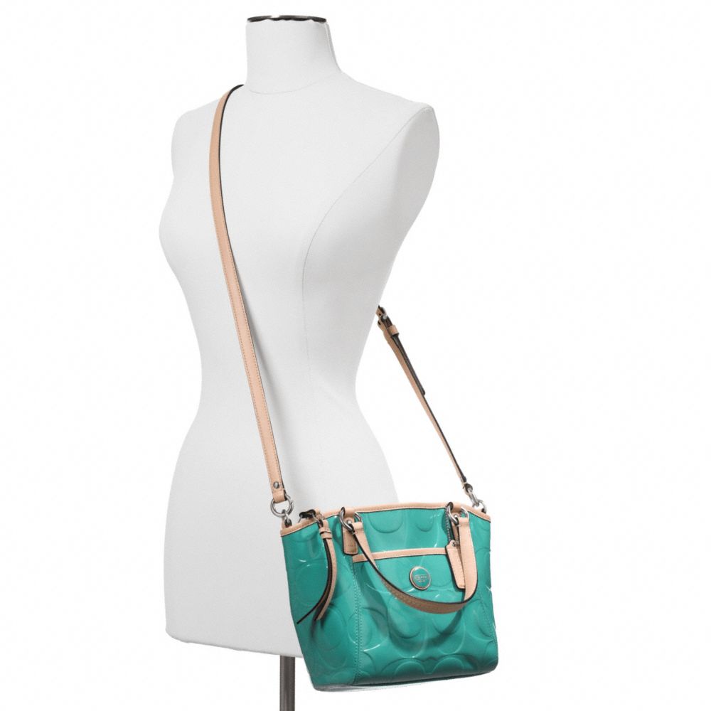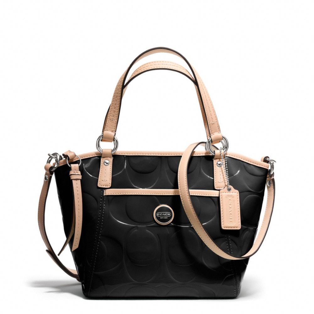 SIGNATURE STRIPE EMBOSSED PATENT SMALL POCKET TOTE