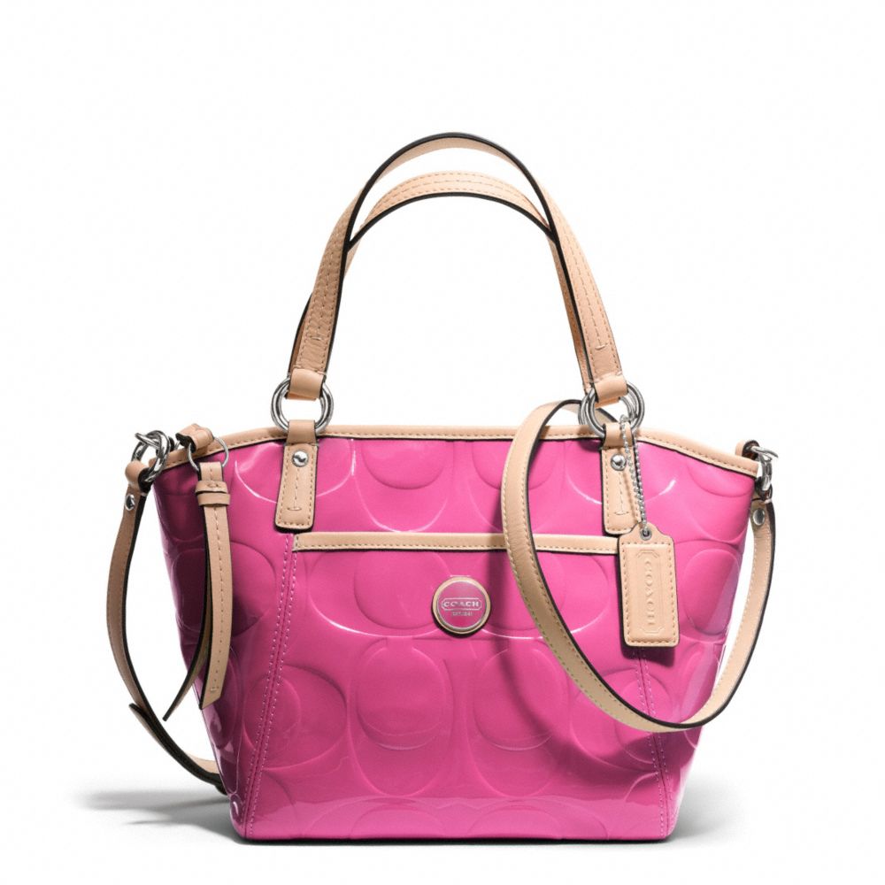 SIGNATURE STRIPE EMBOSSED PATENT SMALL POCKET TOTE