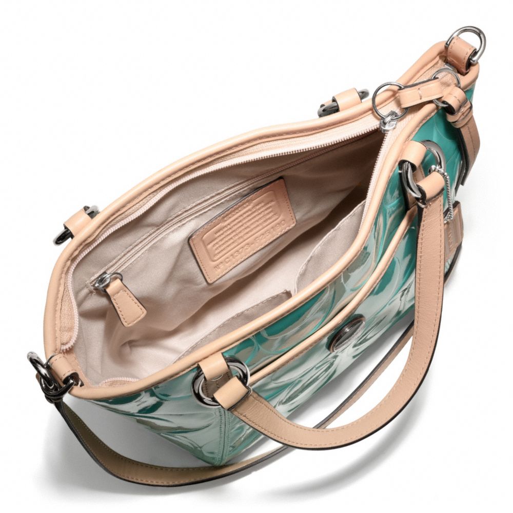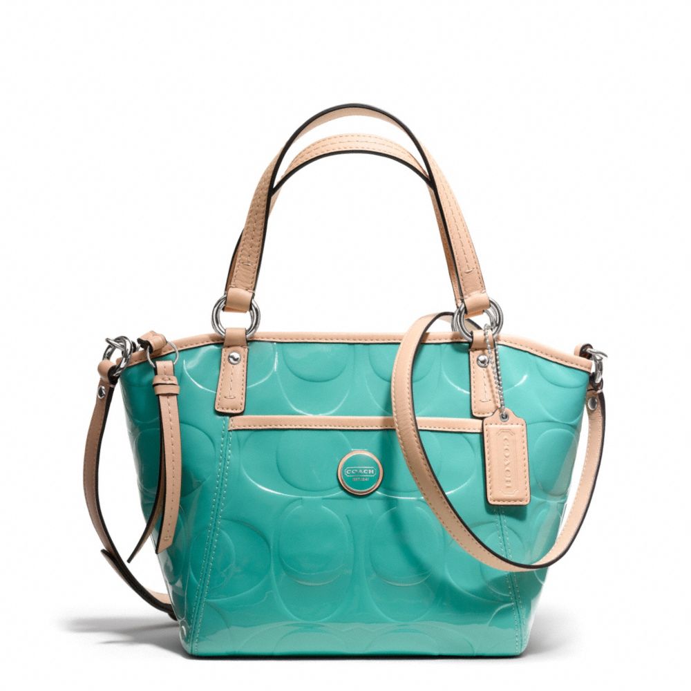 SIGNATURE STRIPE EMBOSSED PATENT SMALL POCKET TOTE