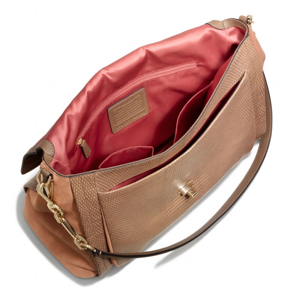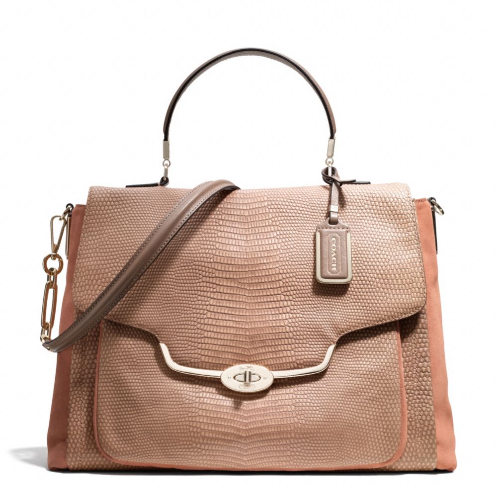 MADISON NUBUCK AND LIZARD EMBOSSED LARGE SADIE FLAP SATCHEL