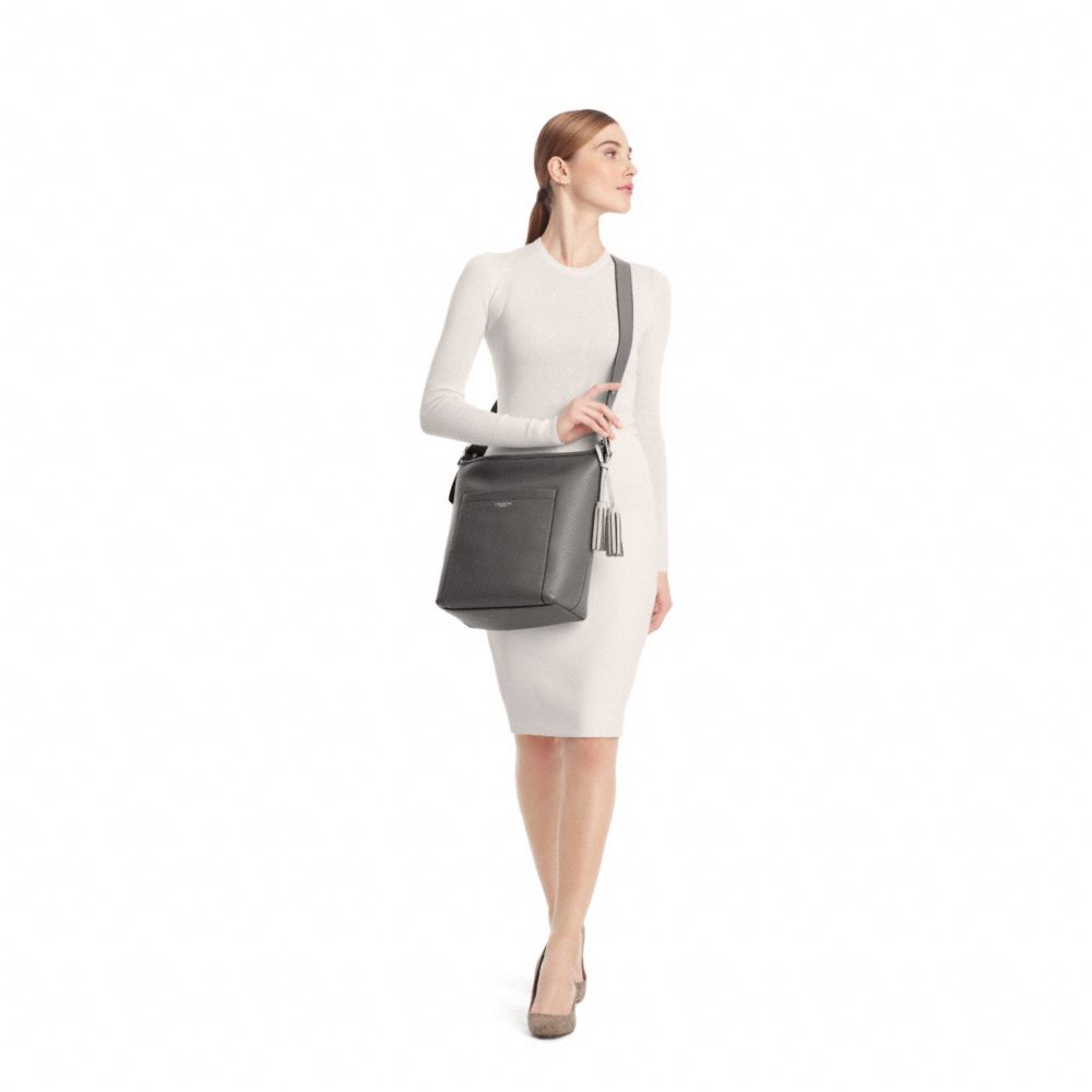 Strap with 18 3/4" drop for crossbody wear converts to double strap with 9 1/2" drop for shoulder wear
