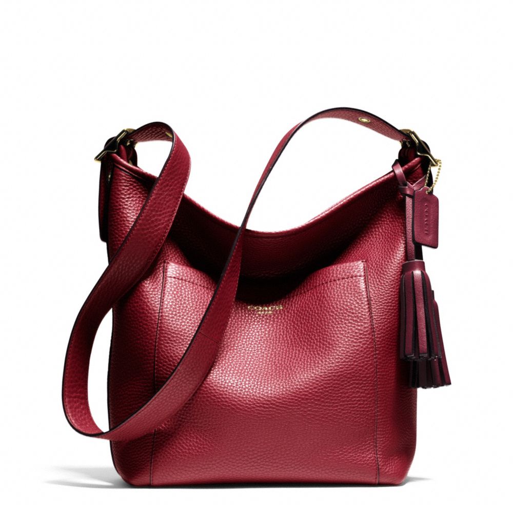 Strap with 18 3/4" drop for crossbody wear converts to double strap with 9 1/2" drop for shoulder wear