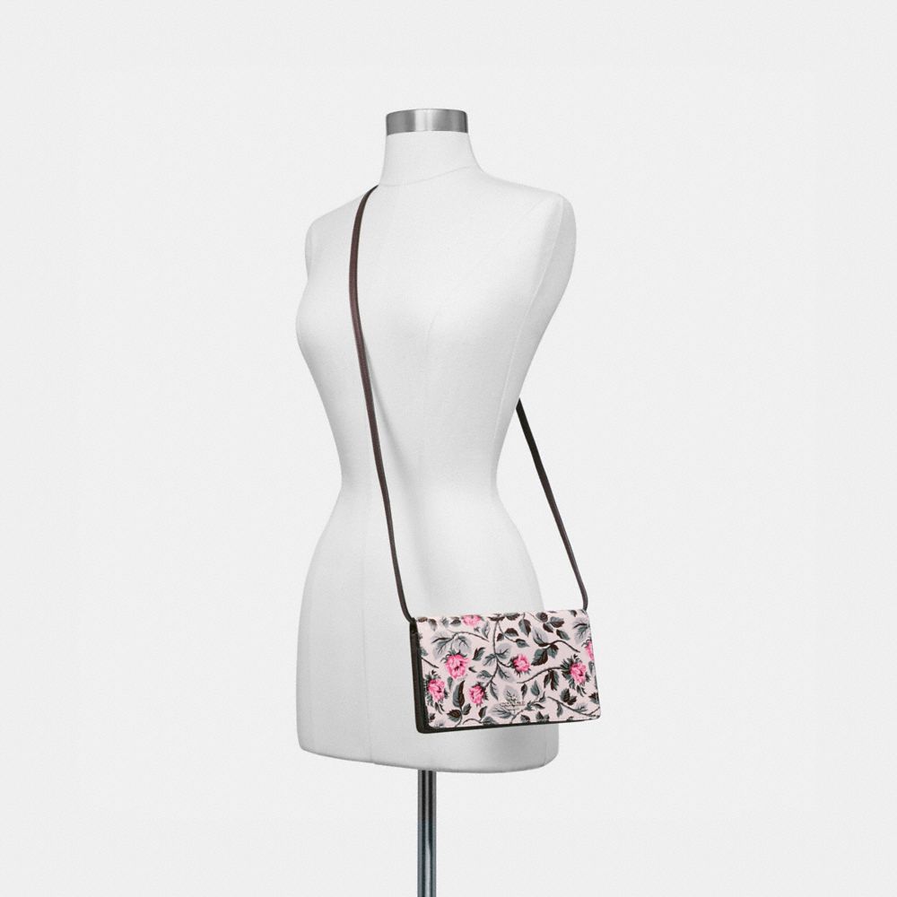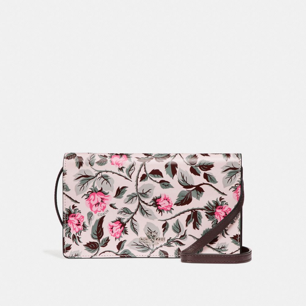 FOLDOVER CROSSBODY CLUTCH WITH SLEEPING ROSE PRINT
