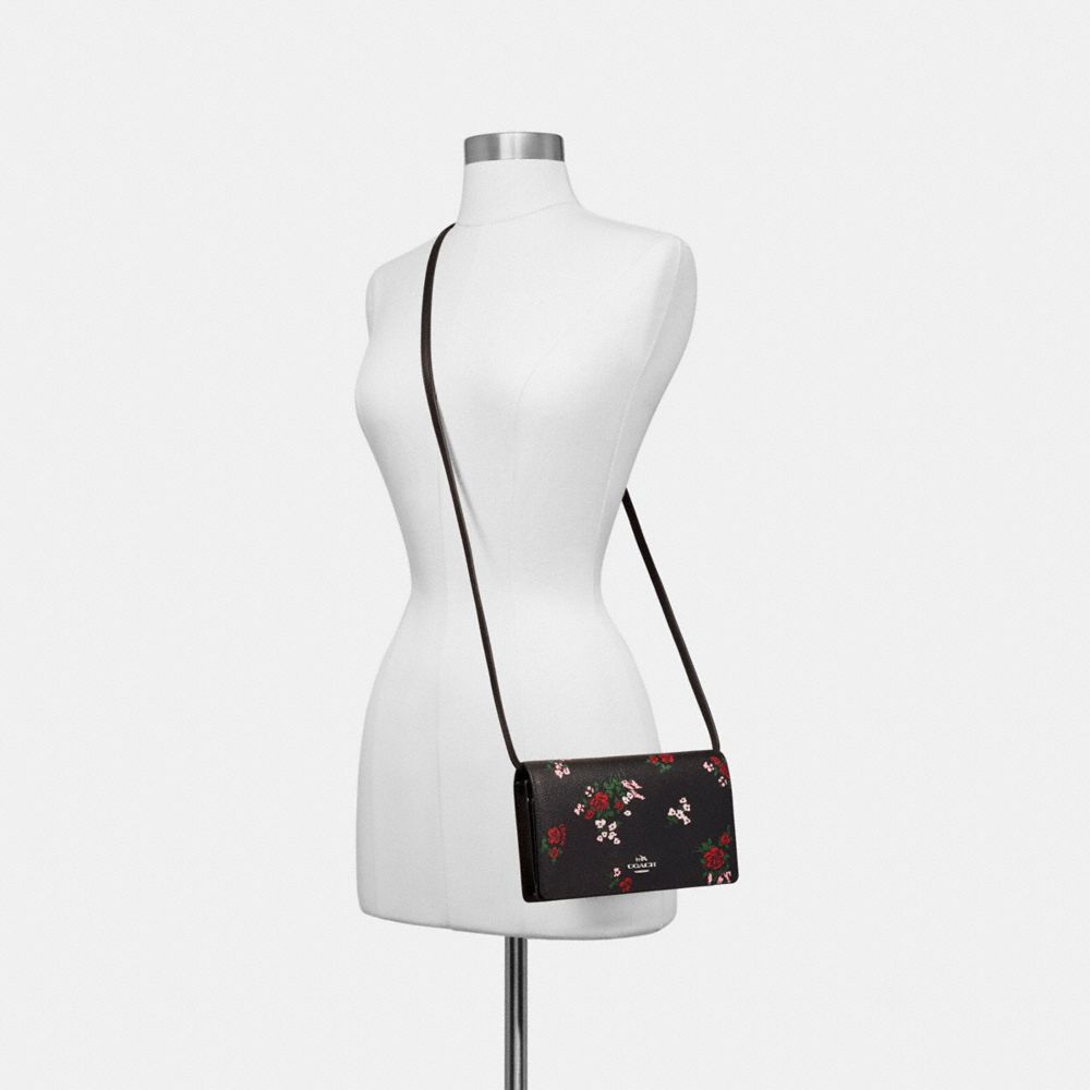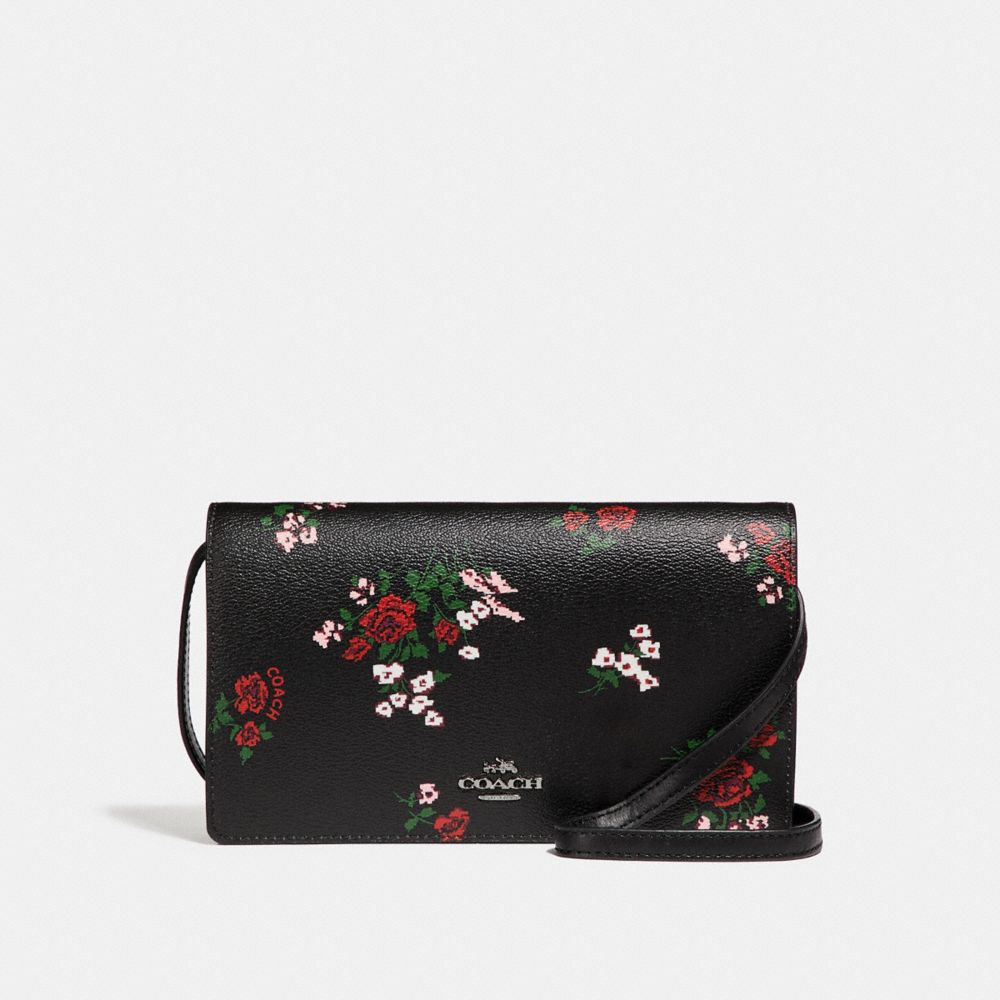 FOLDOVER CROSSBODY CLUTCH WITH CROSS STITCH FLORAL PRINT
