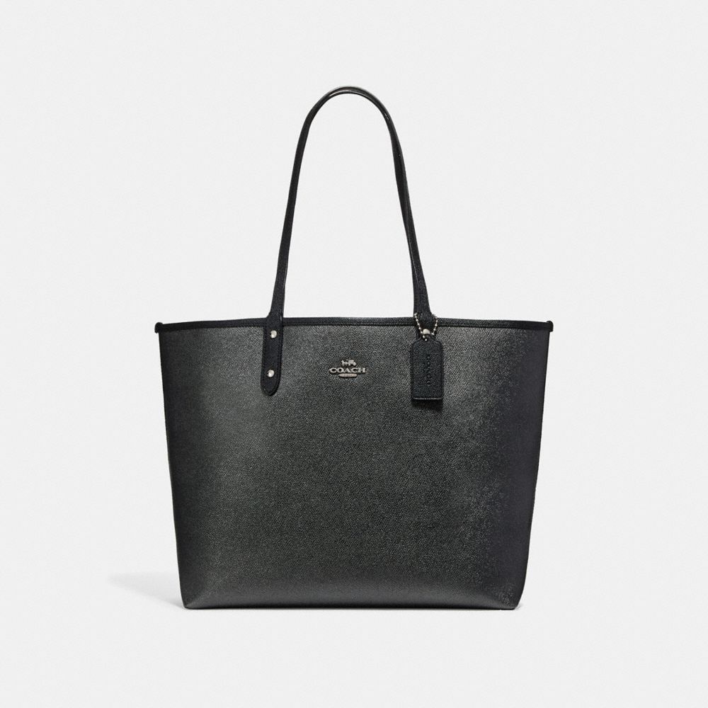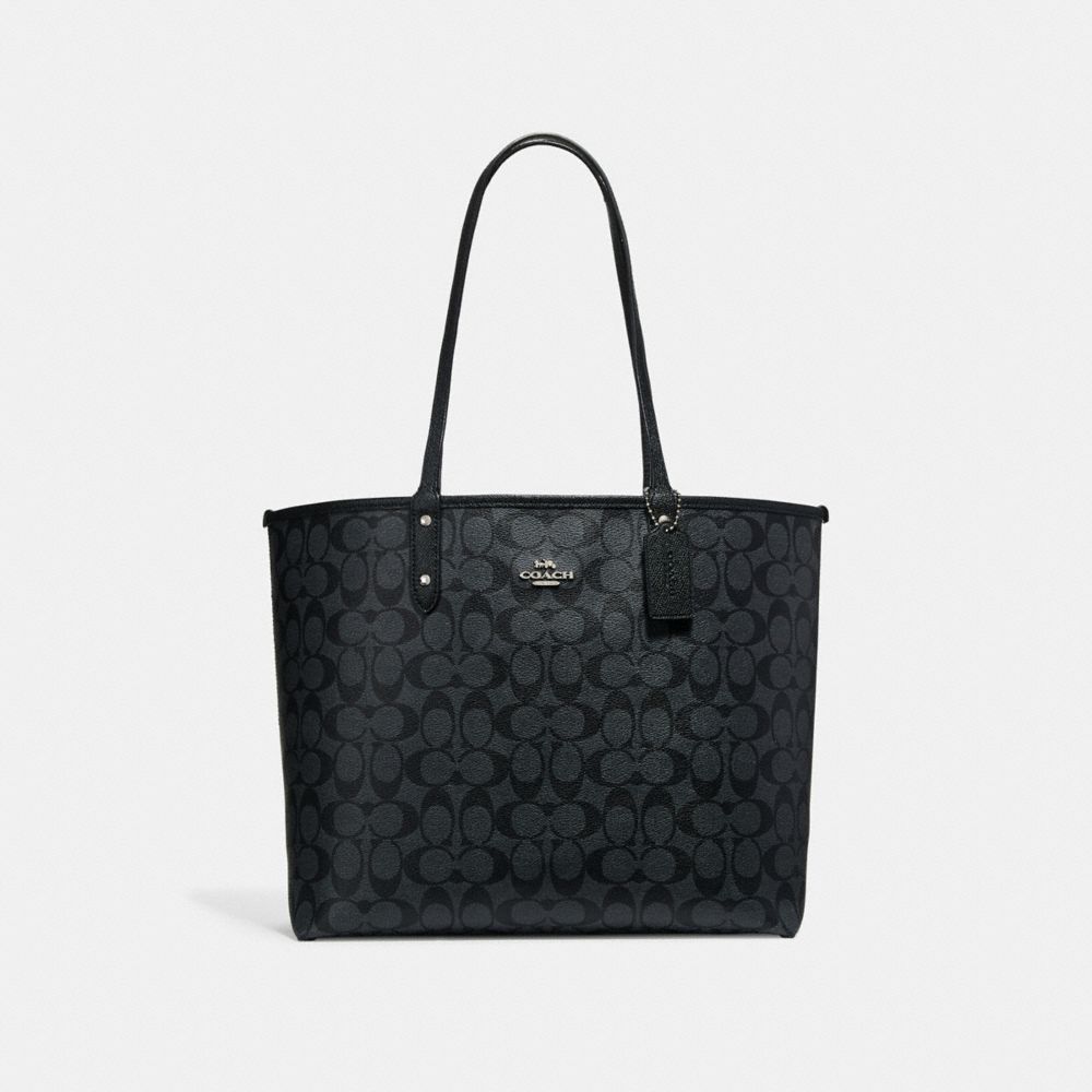 REVERSIBLE CITY TOTE IN SIGNATURE AND METALLIC CANVAS