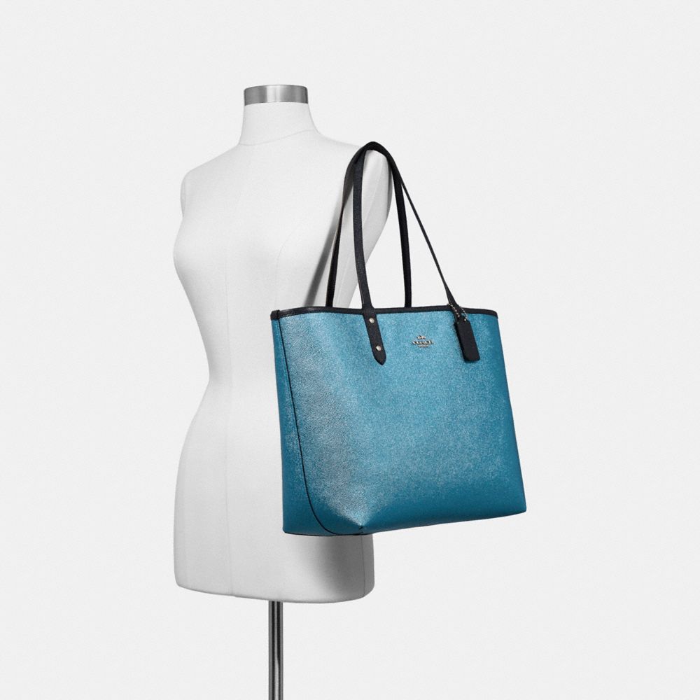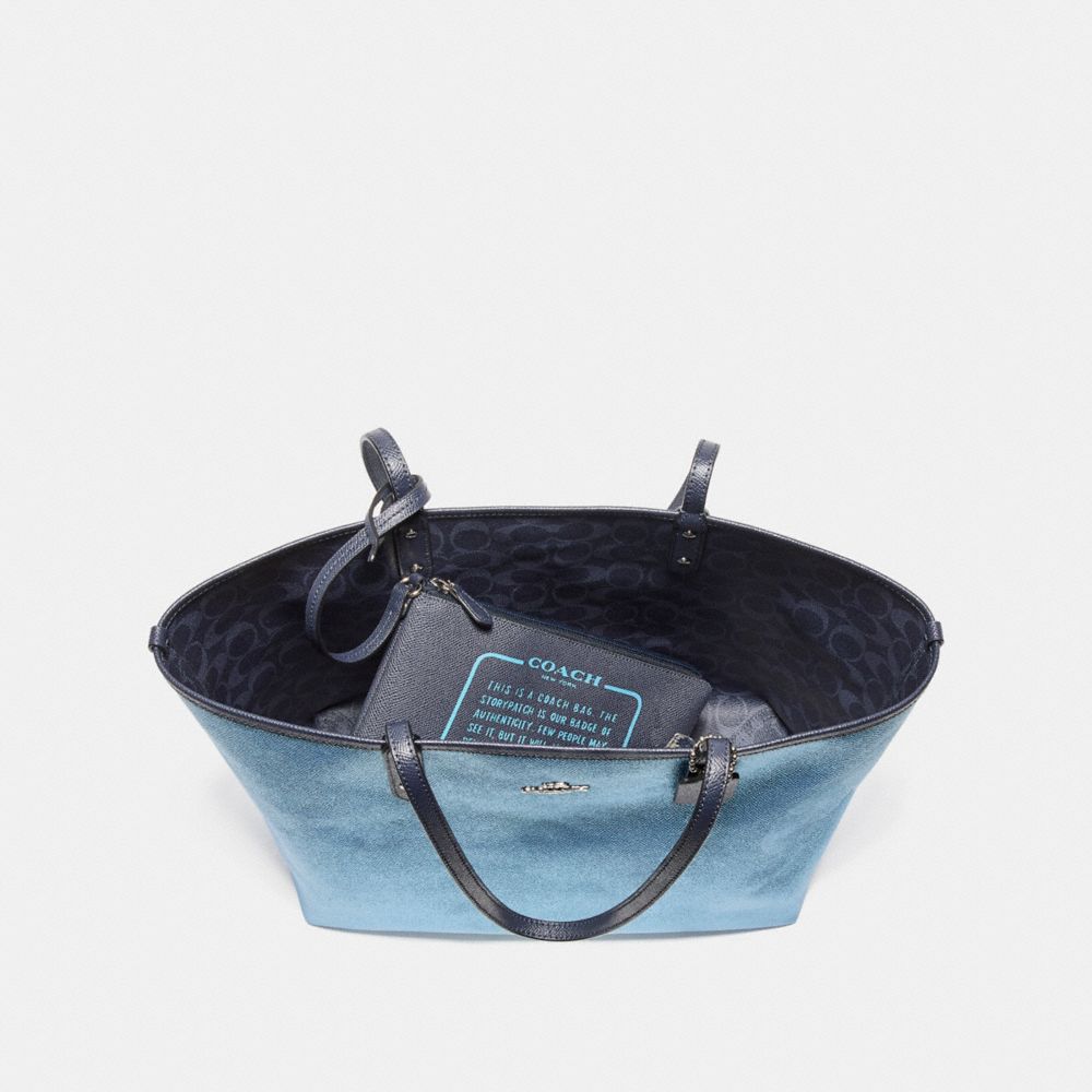 REVERSIBLE CITY TOTE IN SIGNATURE AND METALLIC CANVAS