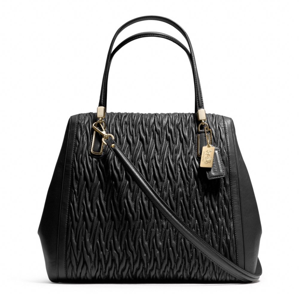 MADISON GATHERED TWIST LEATHER NORTH/SOUTH SATCHEL